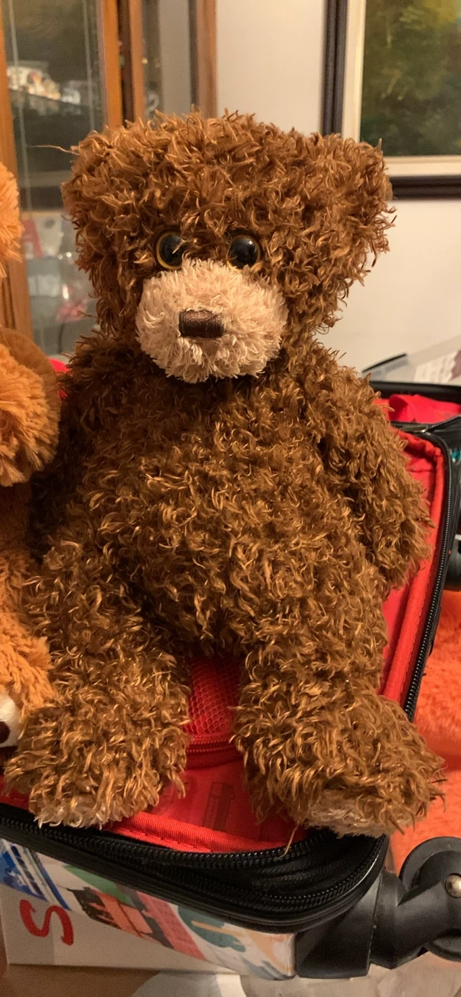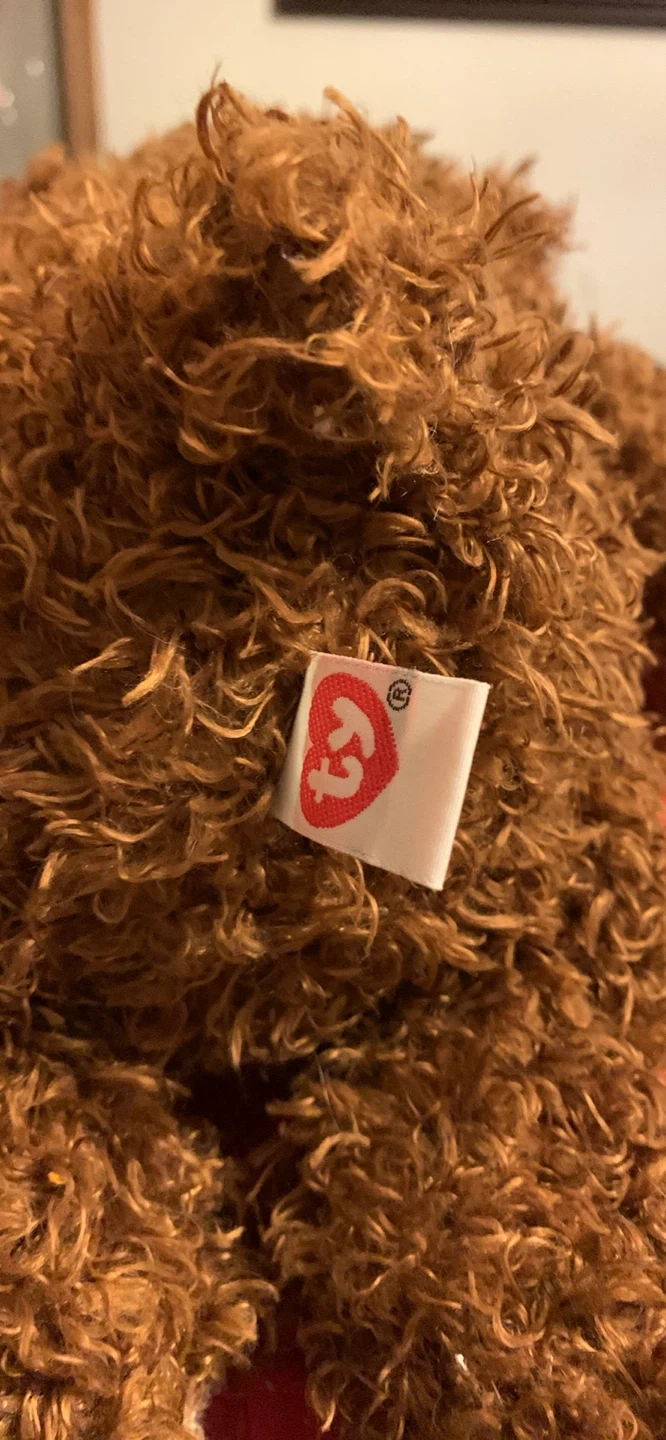 A classic brown curly plush teddy bear from Ty. It's soft and cuddly, perfect for any collection. Surface washable.