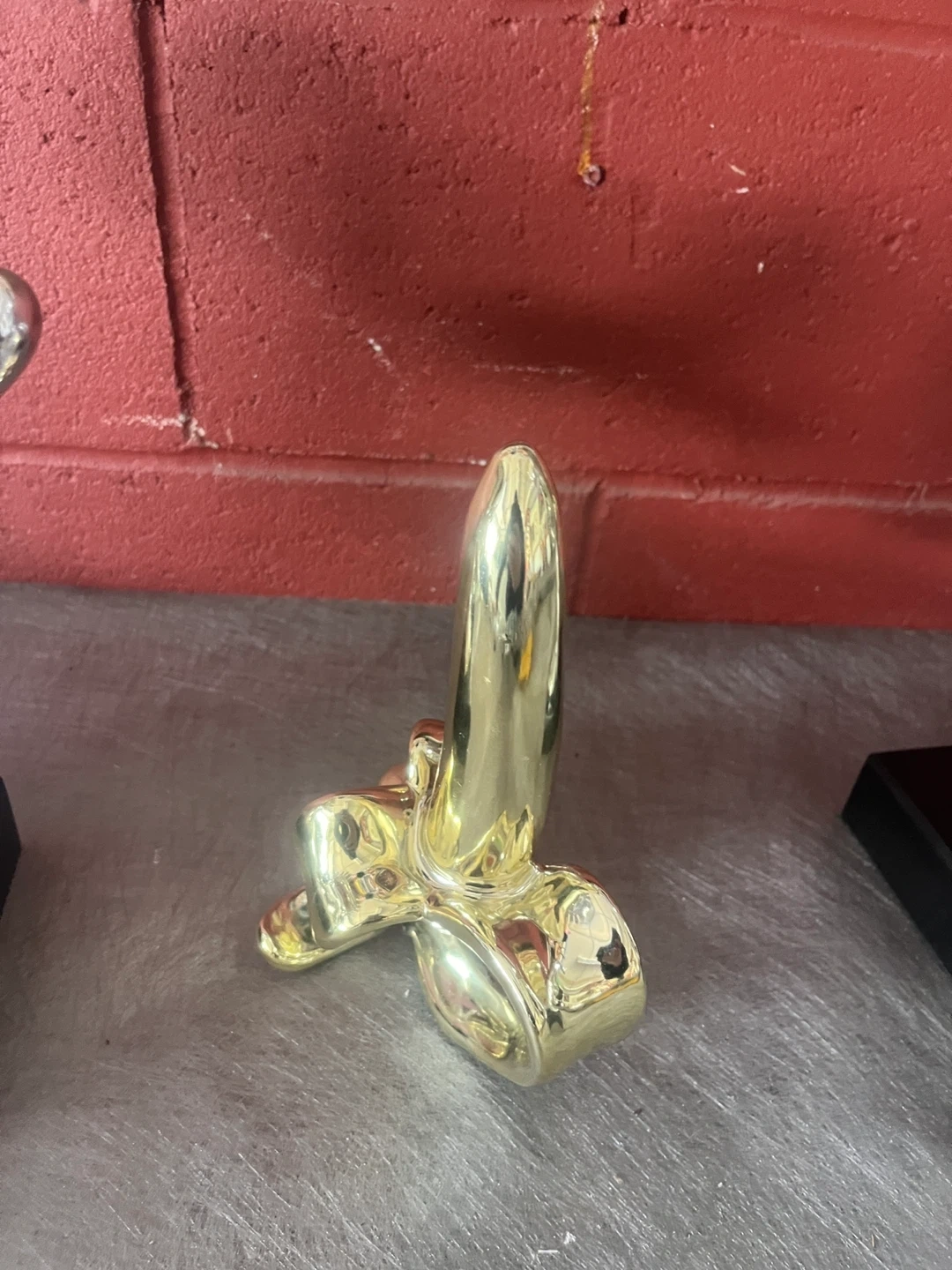 Art meets comedy in these one of a kind statues depicting two silver baby monkeys fighting for gold banana.