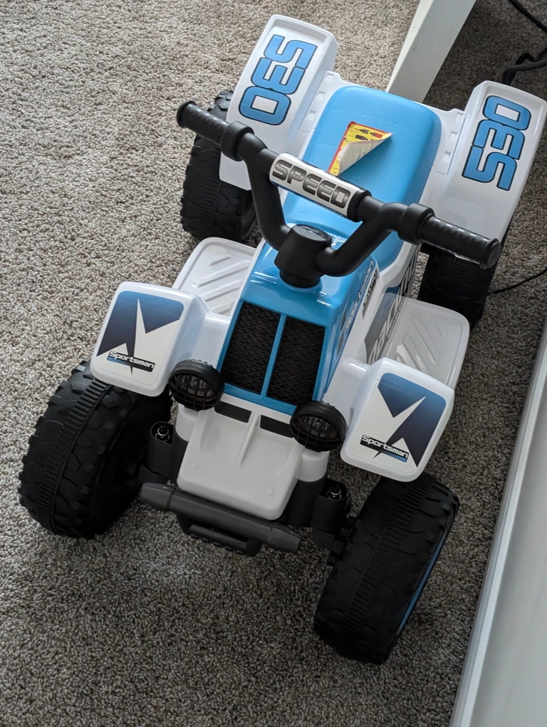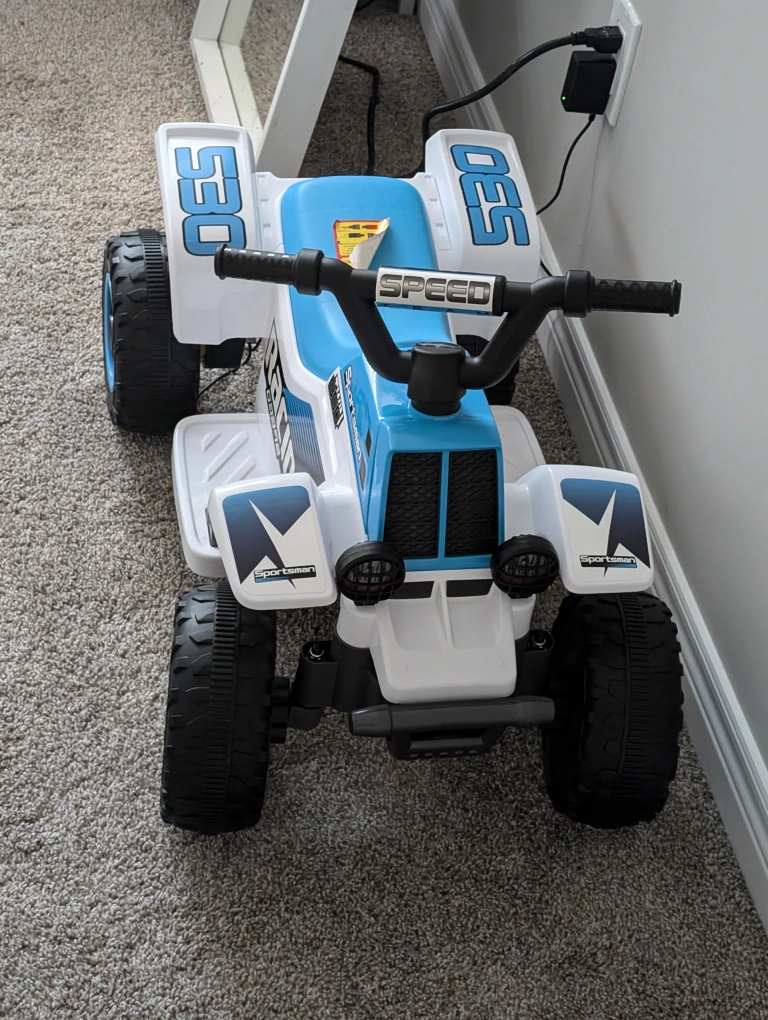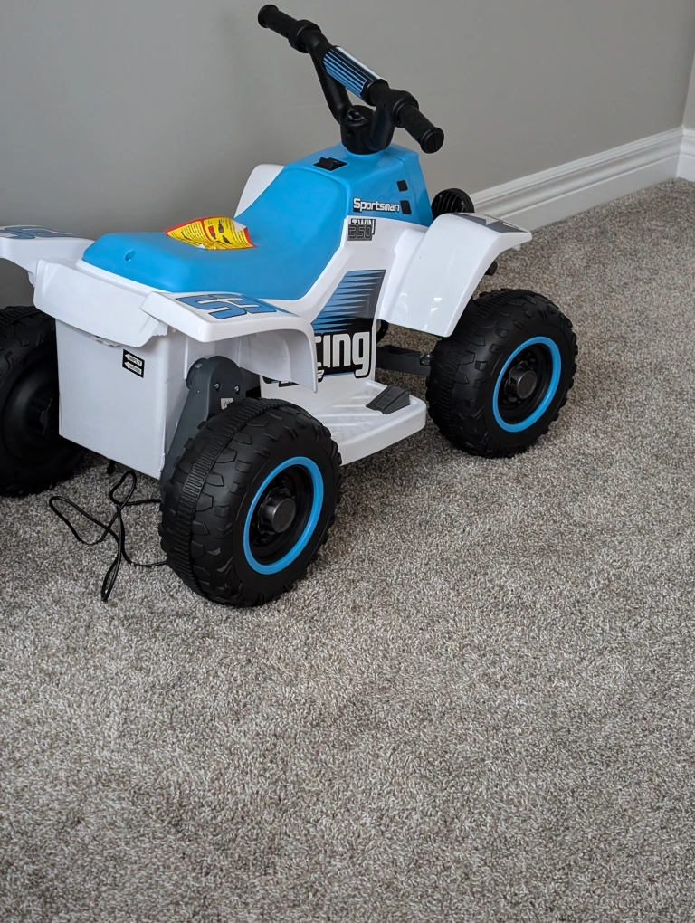 Selling a gently new Sportsman 520 kids ATV ride-on toy! It's white and blue and ready for some fun adventures. Perfect for little ones who love to explore! no battery or anything Just maunlly push