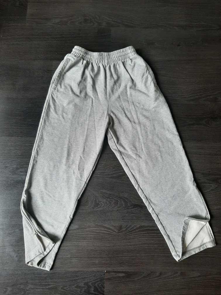 Relaxed fit sweatpants, perfect for lounging. Features an elastic waistband and drawstring closure. The pants have a zipper at the bottom of the leg openings, as well. This outfit will provide you with ultimate comfort, creating a peaceful day.