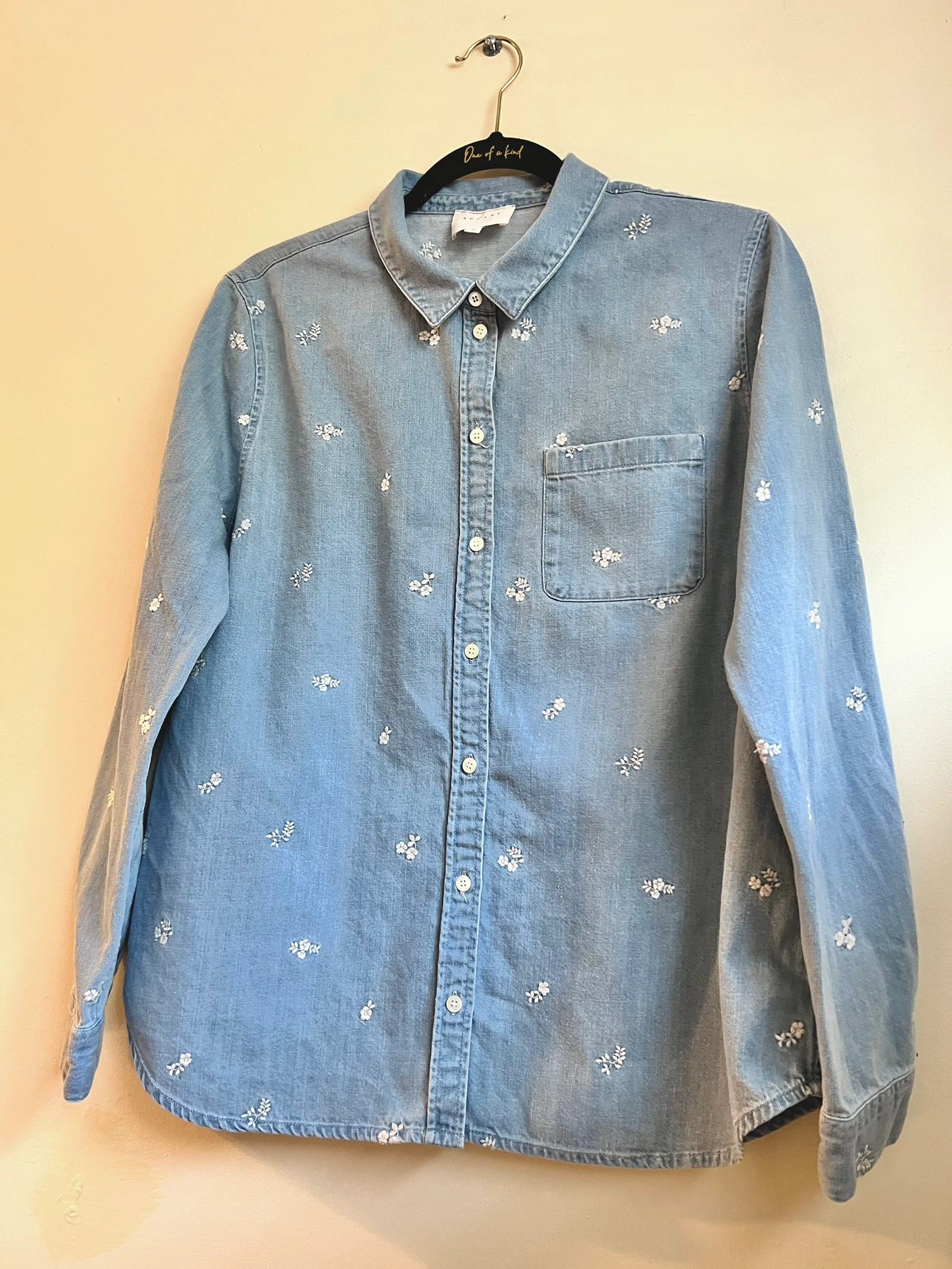 Buy & SellDenim Embroidered ShirtDenim Embroidered Shirt$47Gently used Denim shirt from French brand Sézane Size small Floral embroideryConditionLike newSizeEU 40 (CA 8)BrandSezane WHERE TO MEETCheck LocationView MapSELLERSammyIonview826 reviews1 chats·3 favorites·72 viewsSEND CHAT TO SELLERHi Sammy! I’m interested in your listing.Hi Sammy! I’m interested in your listing.Get the Karrot app to chatSign In to chat