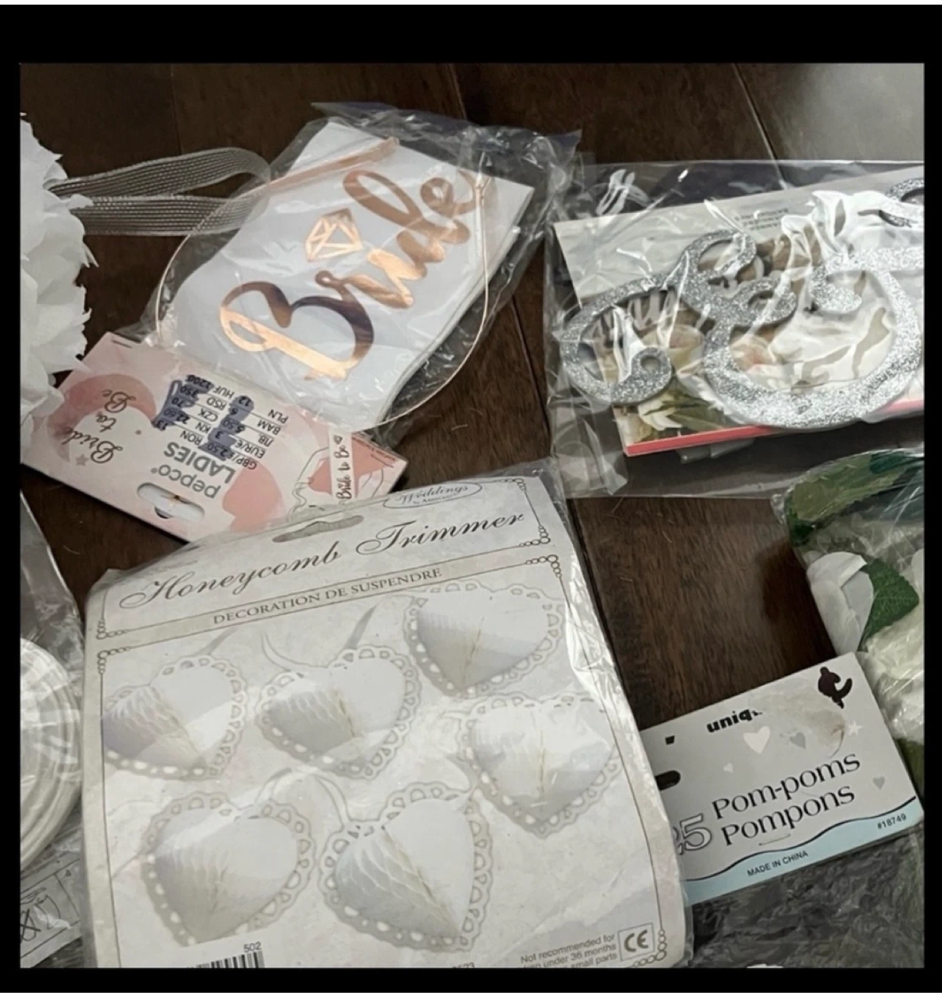 Includes a "Ring for a Kiss" bell, fashion hold-ups, pom-poms, and decorative flowers. Great for bridal showers and bachelorette parties!