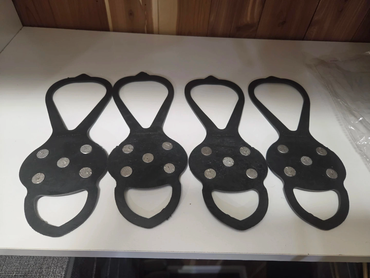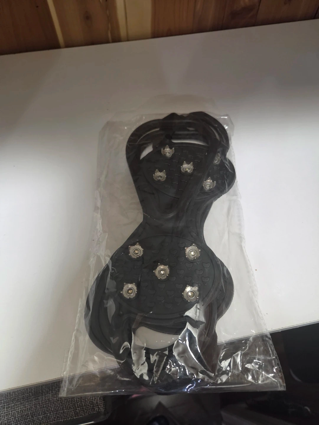 Stay safe on icy and slippery surfaces with these durable ice cleats. Made from strong black rubber, they feature metal studs that provide excellent grip and stability. Designed for convenience, they easily slip on over your shoes—perfect for winter walking, errands, or outdoor activities.