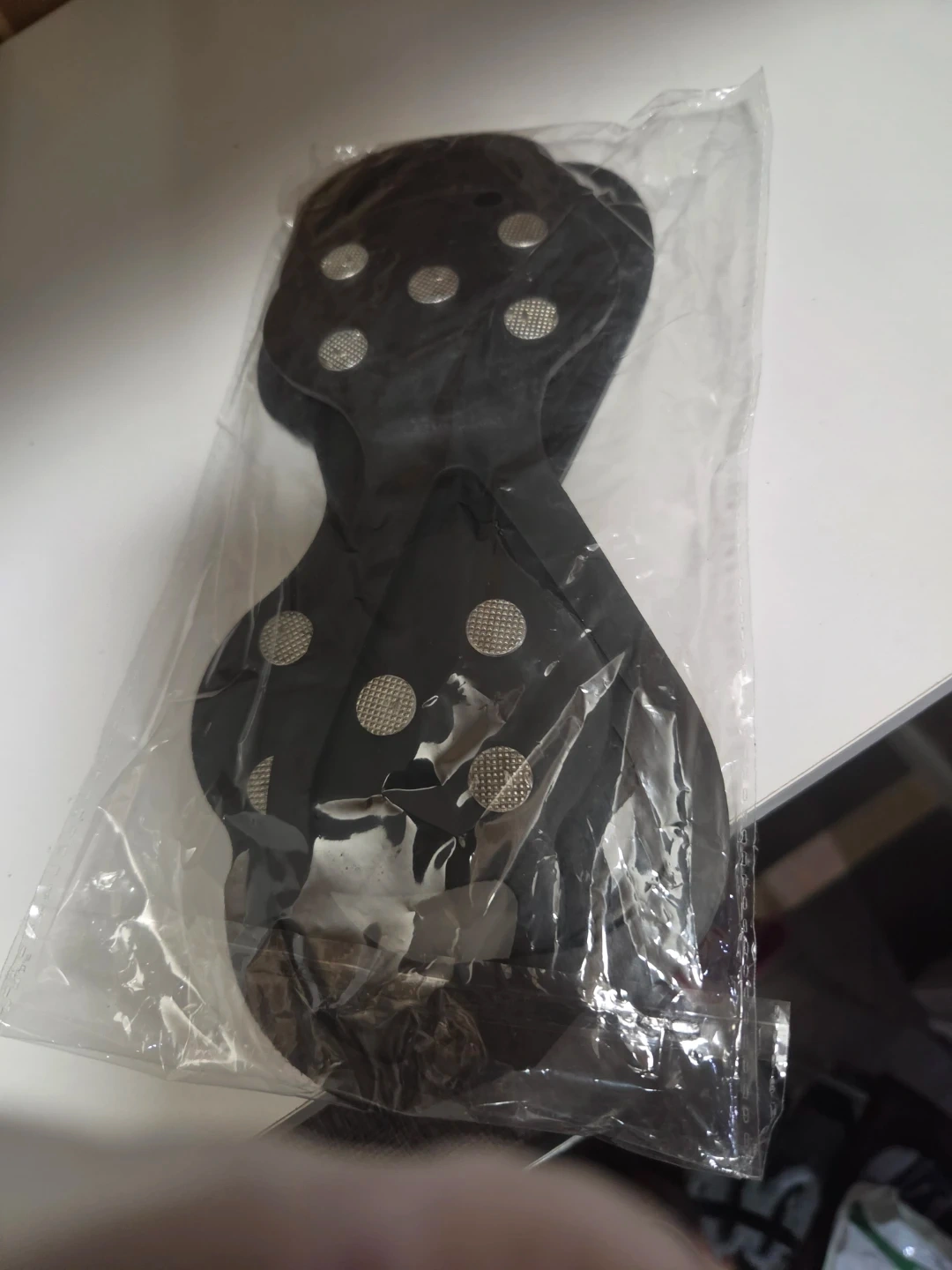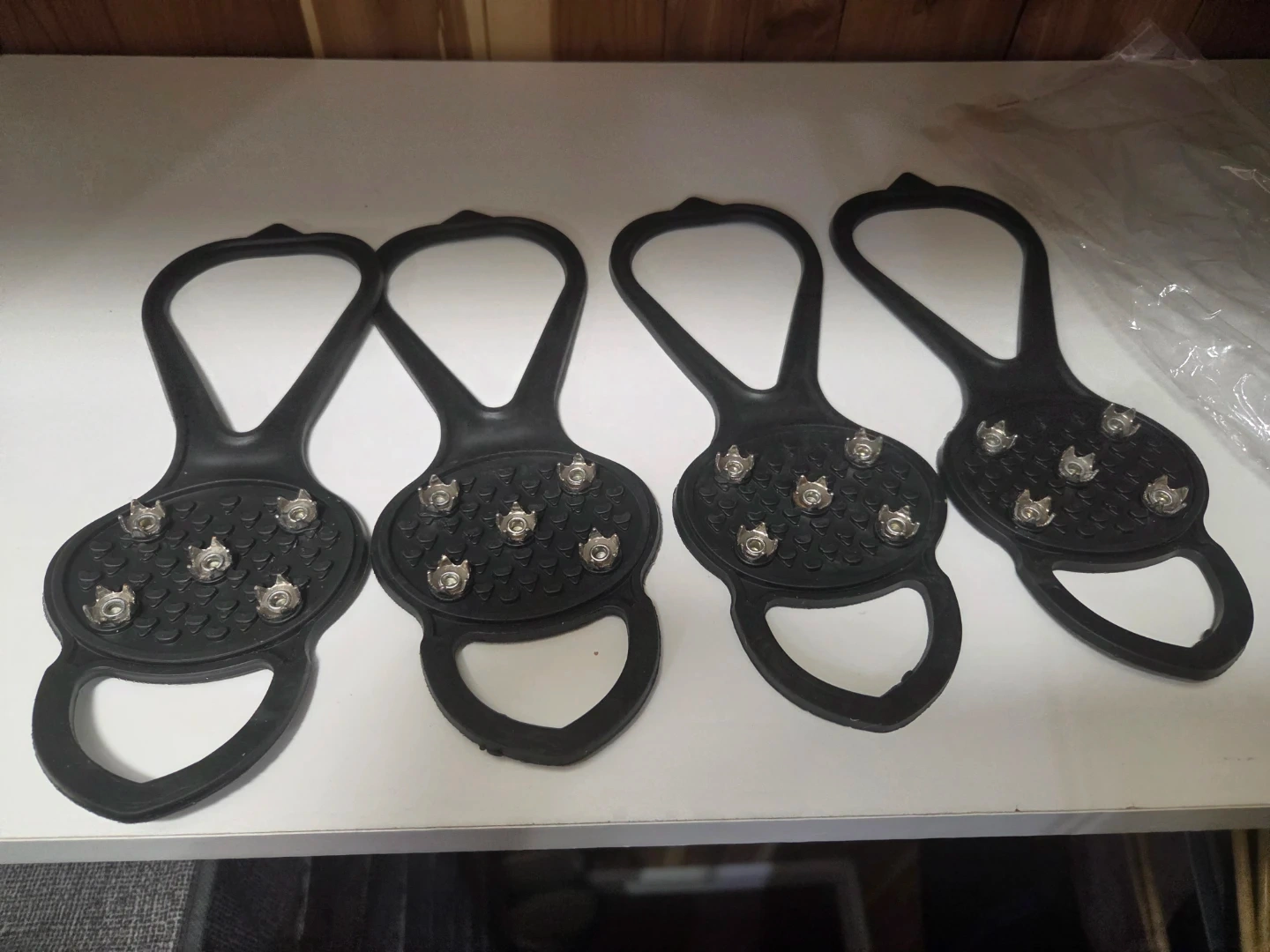 Stay safe on icy and slippery surfaces with these durable ice cleats. Made from strong black rubber, they feature metal studs that provide excellent grip and stability. Designed for convenience, they easily slip on over your shoes—perfect for winter walking, errands, or outdoor activities.