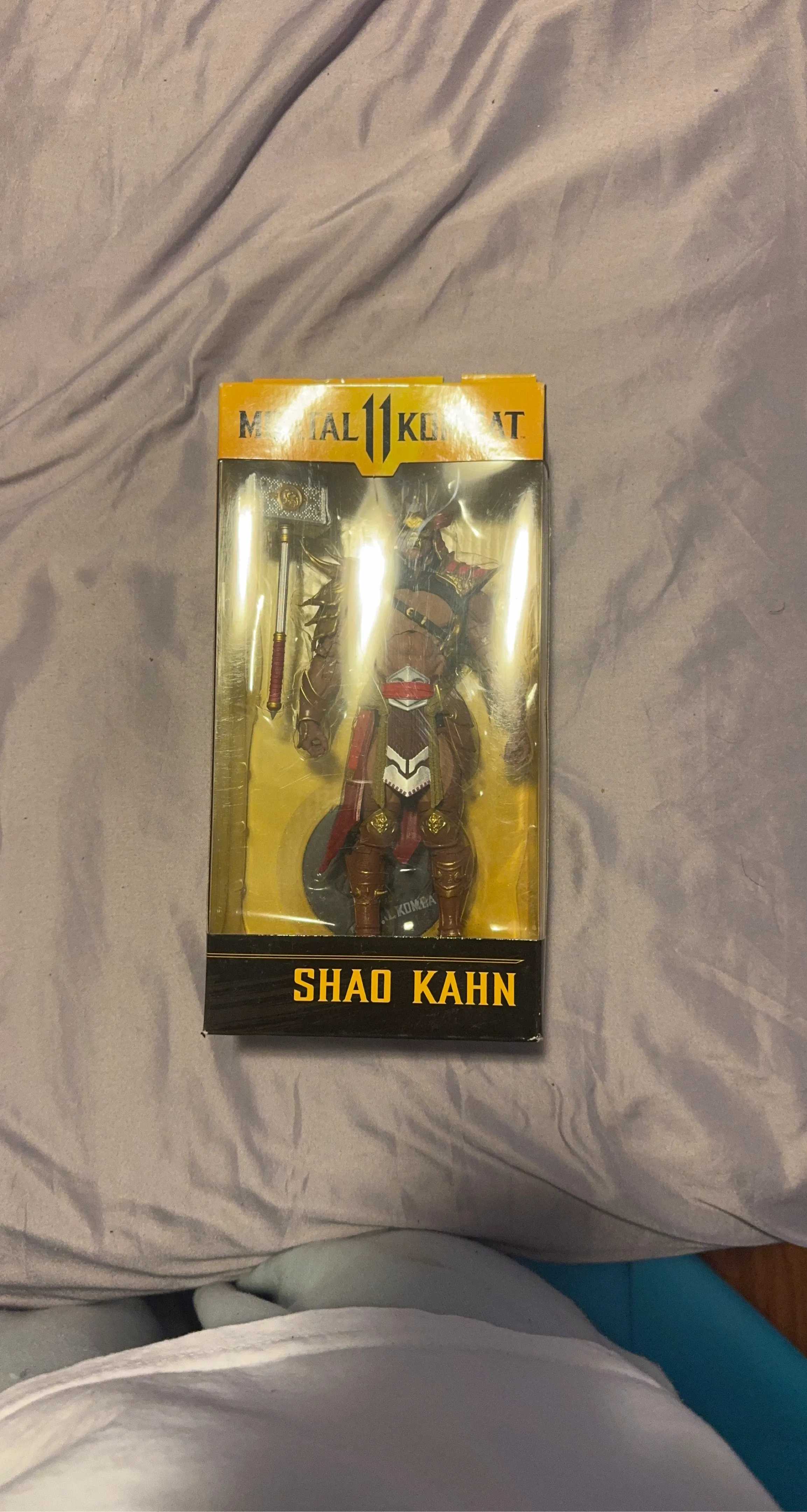 This is a Mortal Kombat 11 action figure of Shao Kahn. It comes in its original packaging with accessories. The figure appears to be made of plastic. Pick up only