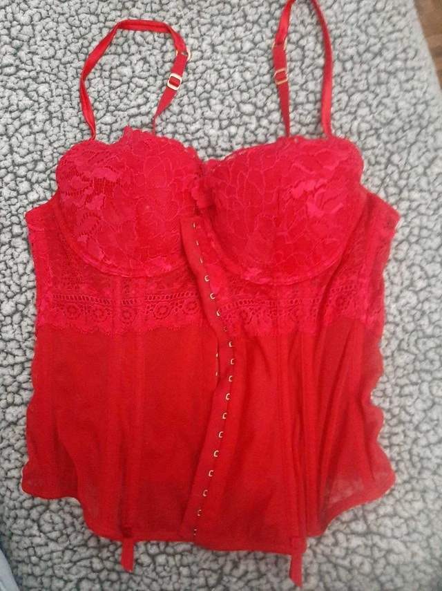 Spice things up with this red La Senza lingerie! It's a medium size and is in excellent condition, ready to add a touch of romance to your wardrobe. Key features include: - Vibrant red colour - Delicate lace detailing - Adjustable straps for a perfect fit - Comfortable and flattering design If this ad is still twirling on the screen, then yes, it's still available. Grab it before someone else does!