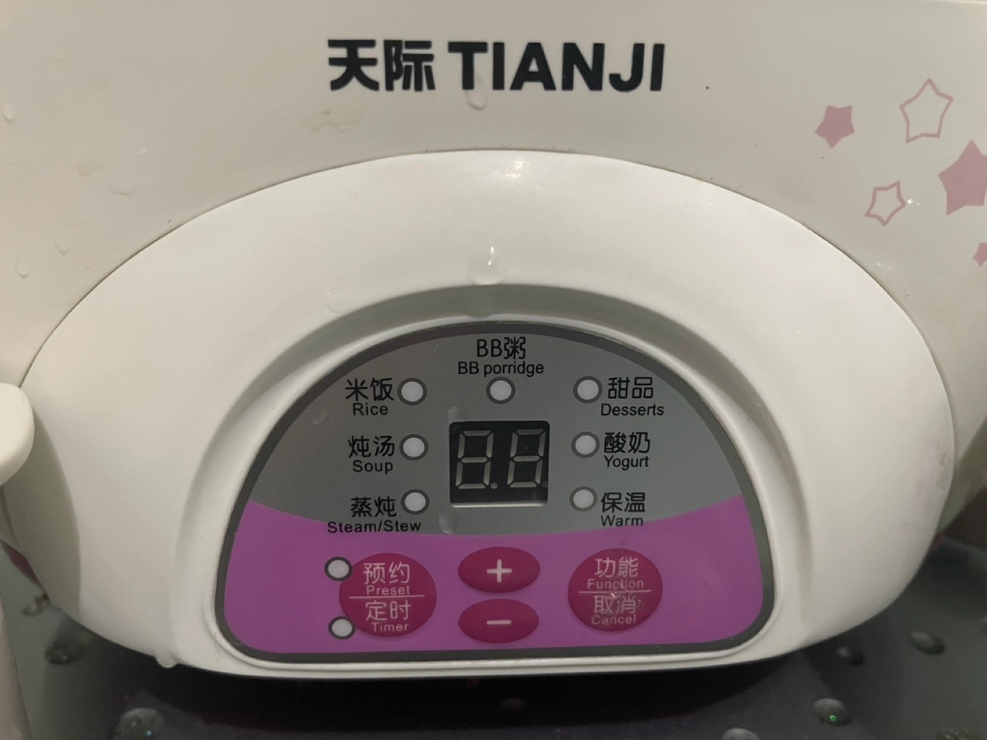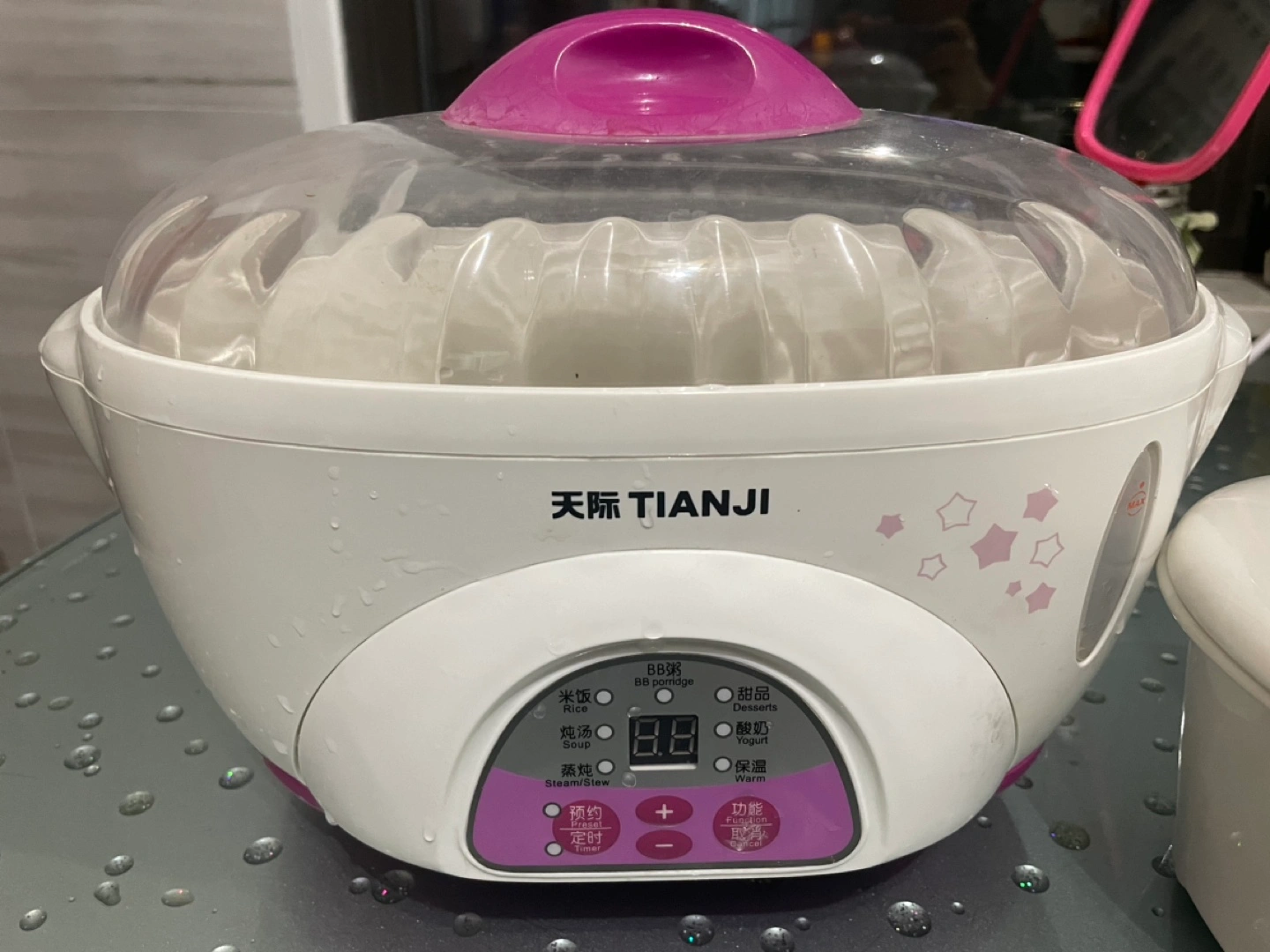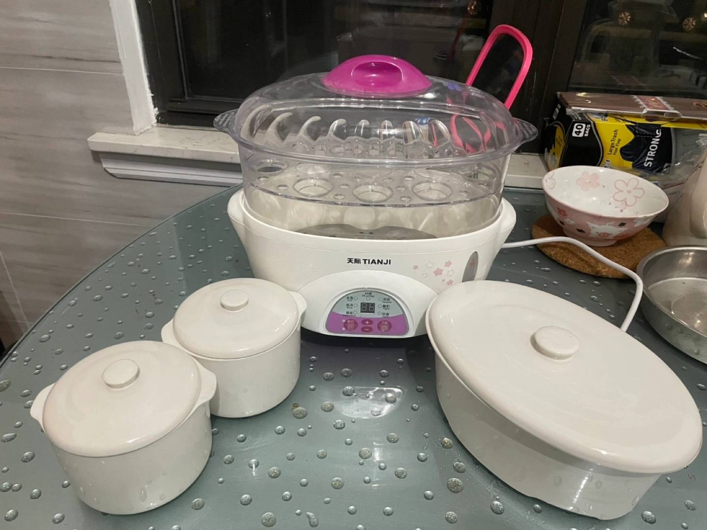 Electric food steamer with multiple functions. Includes two small ceramic bowls. Digital control panel. Great for steaming, stewing, and making yogurt.