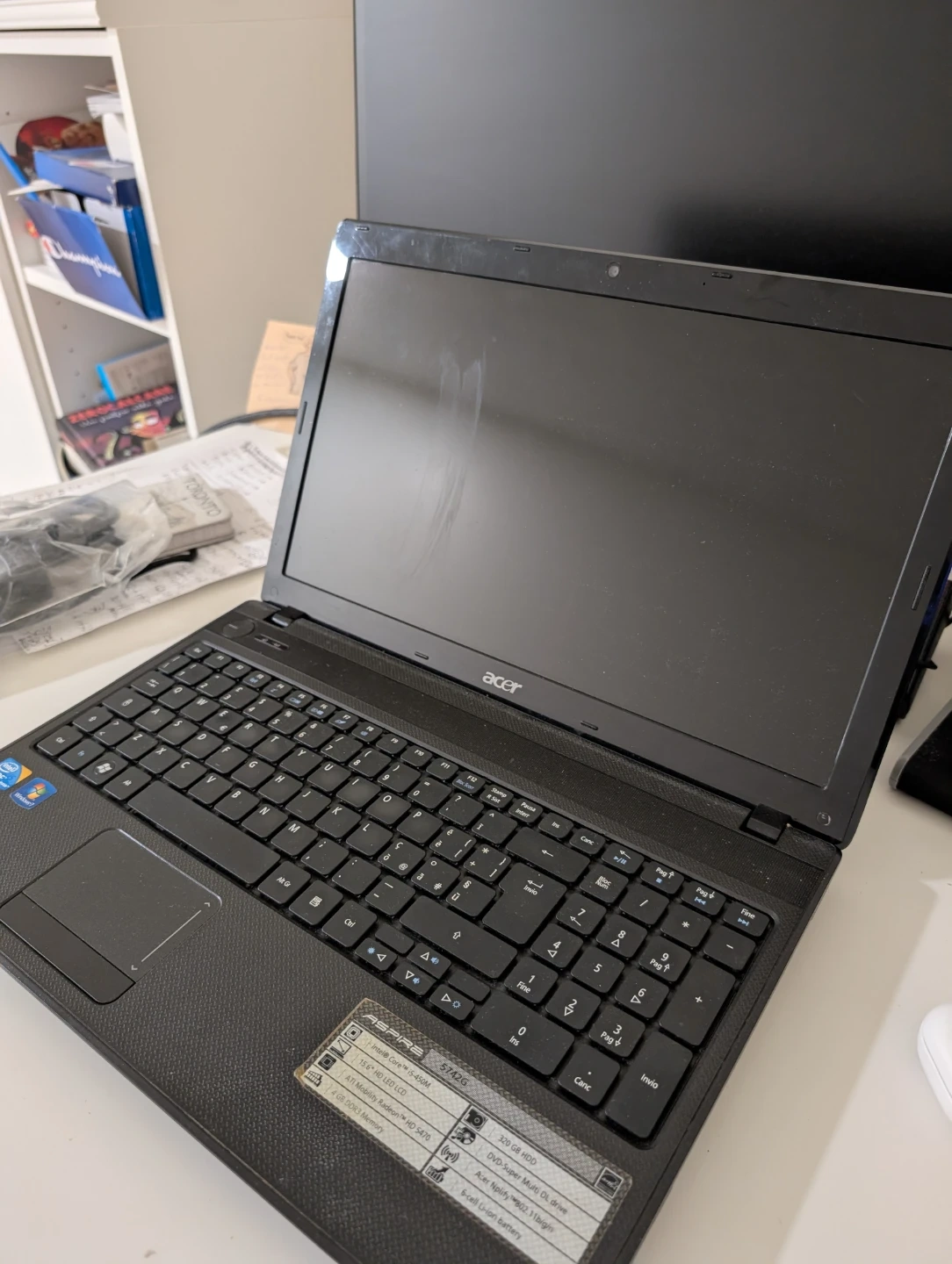 This is an Acer laptop, complete with its original charger. The laptop does not includes a DVD Multi-Drive NO RAM NO HARD DRIVE but. It has an external battery. The only valuable is the screen for substitute your broken one