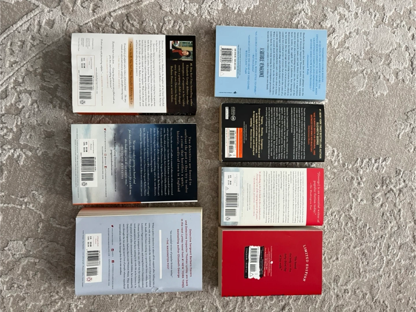 Buy & SellElizabeth George Paperback NovelsElizabeth George Paperback Novels$25Elizabeth George Paperback Novels 7 booksWHERE TO MEETFriars CtView MapSELLERJimGlen Abbey717 reviews0 chats·0 favorites·3 viewsSEND CHAT TO SELLERHi Jim! I’m interested in your listing.Hi Jim! I’m interested in your listing.Get the Karrot app to chatSign In to chat