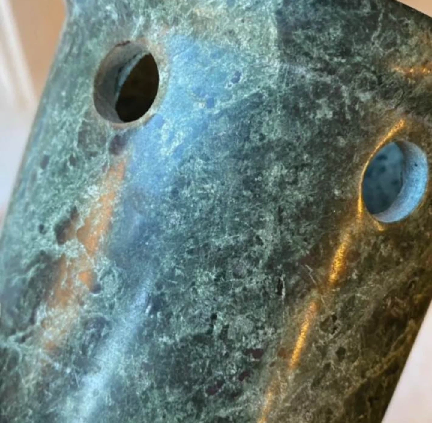 Carved from heavy green marble. It's a decorative piece that adds ambiance. Perfect condition. Does not include cactus.