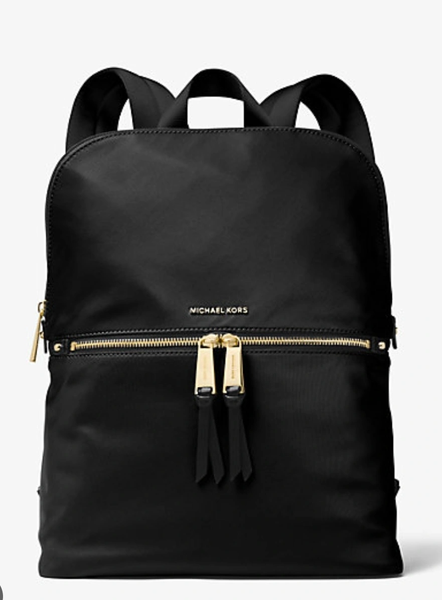 This is a stylish black backpack from Michael Kors! It's perfect for everyday use. The backpack features gold-tone hardware and a front zip pocket. It’s new condition and ready for a new home.