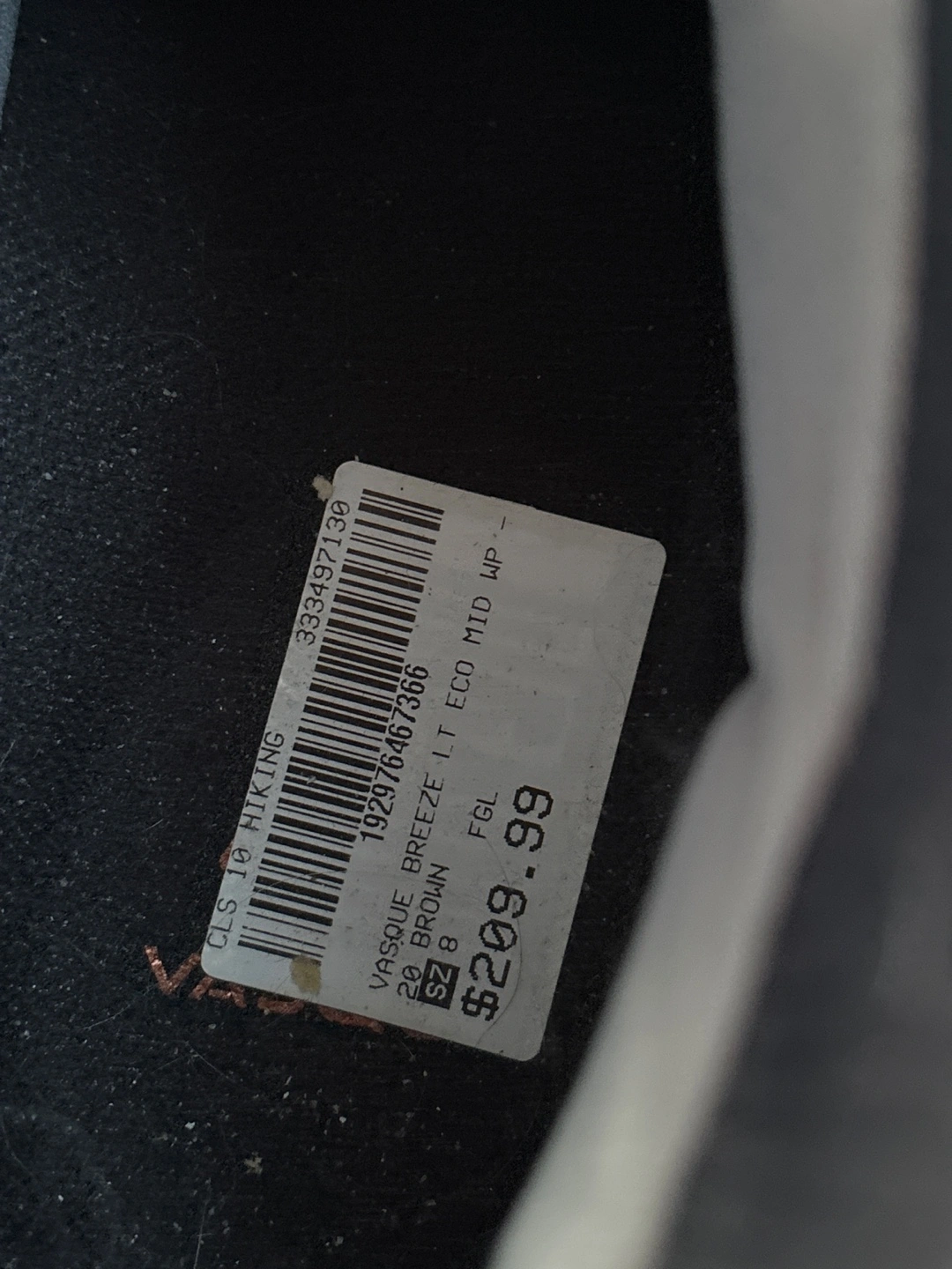 Mens Vasque Breeze LT Eco M10 WP hiking boots. Size 8. Brown. Great for outdoor adventures. Durable and comfortable. Worn twice but my instep is too high so just not meant for me unfortunately