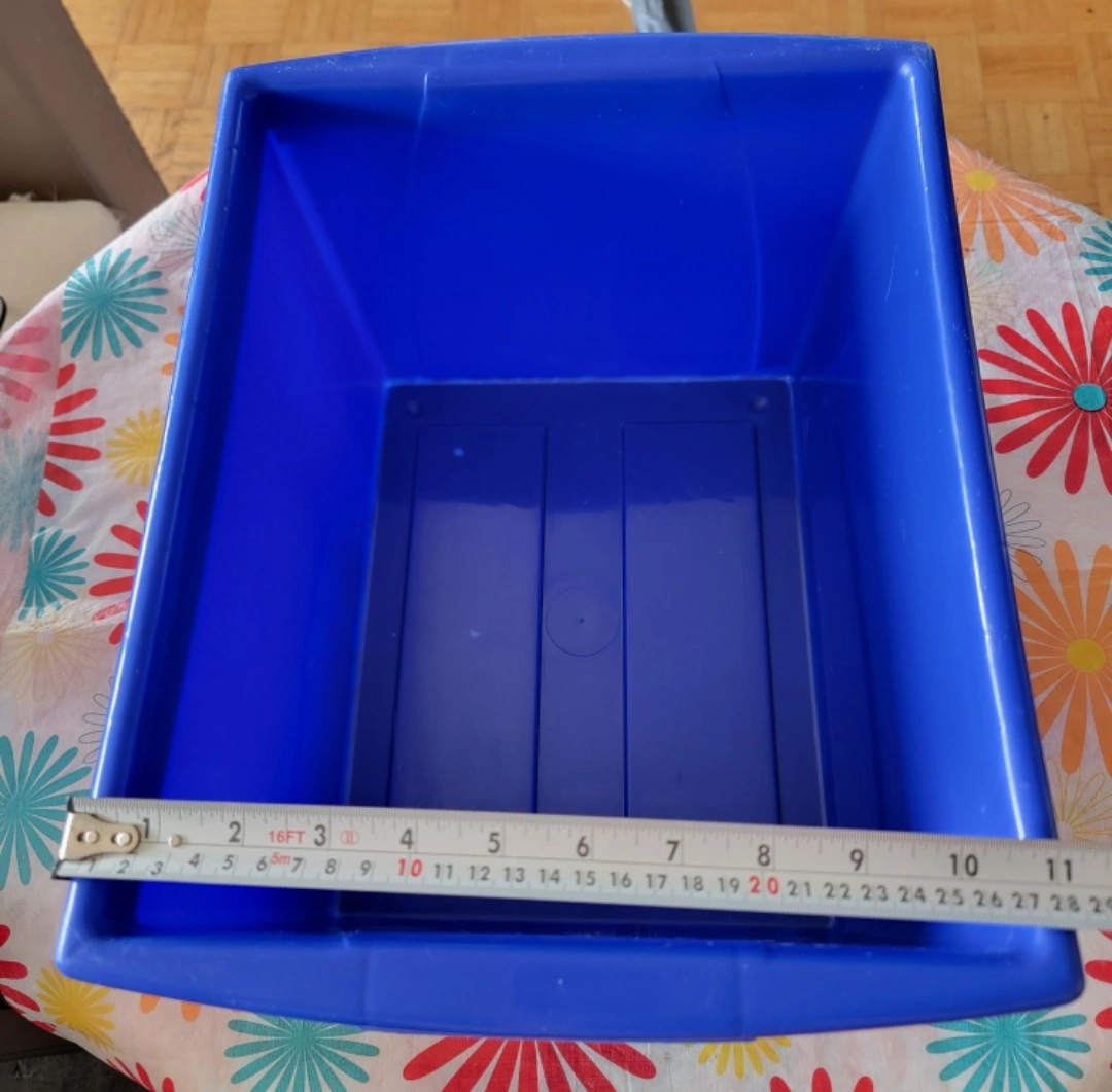 Selling a blue Plastico recycling bin! It's in great shape and ready to help you sort your recyclables. It holds 15L and measures approximately 8 inches tall, 14 inches deep, and 10 inches wide