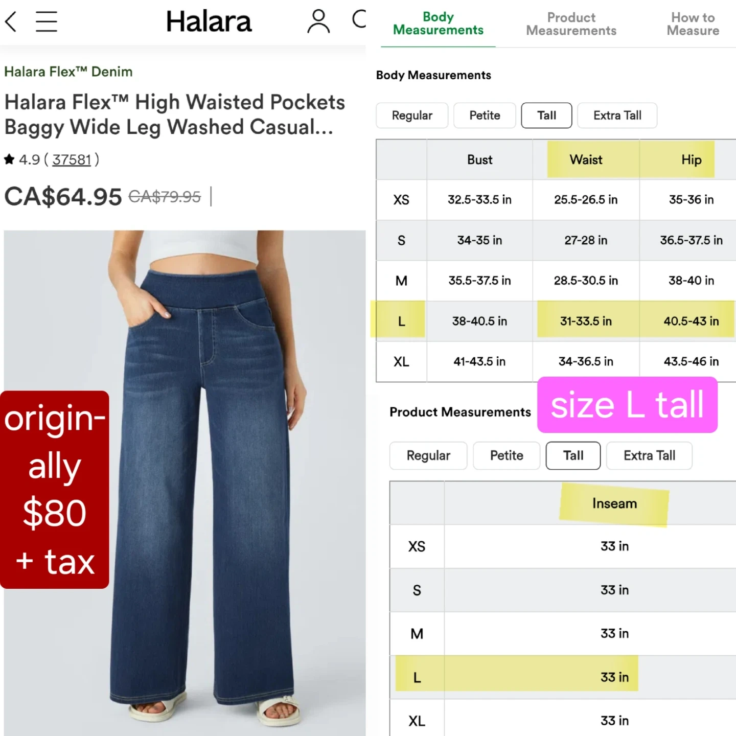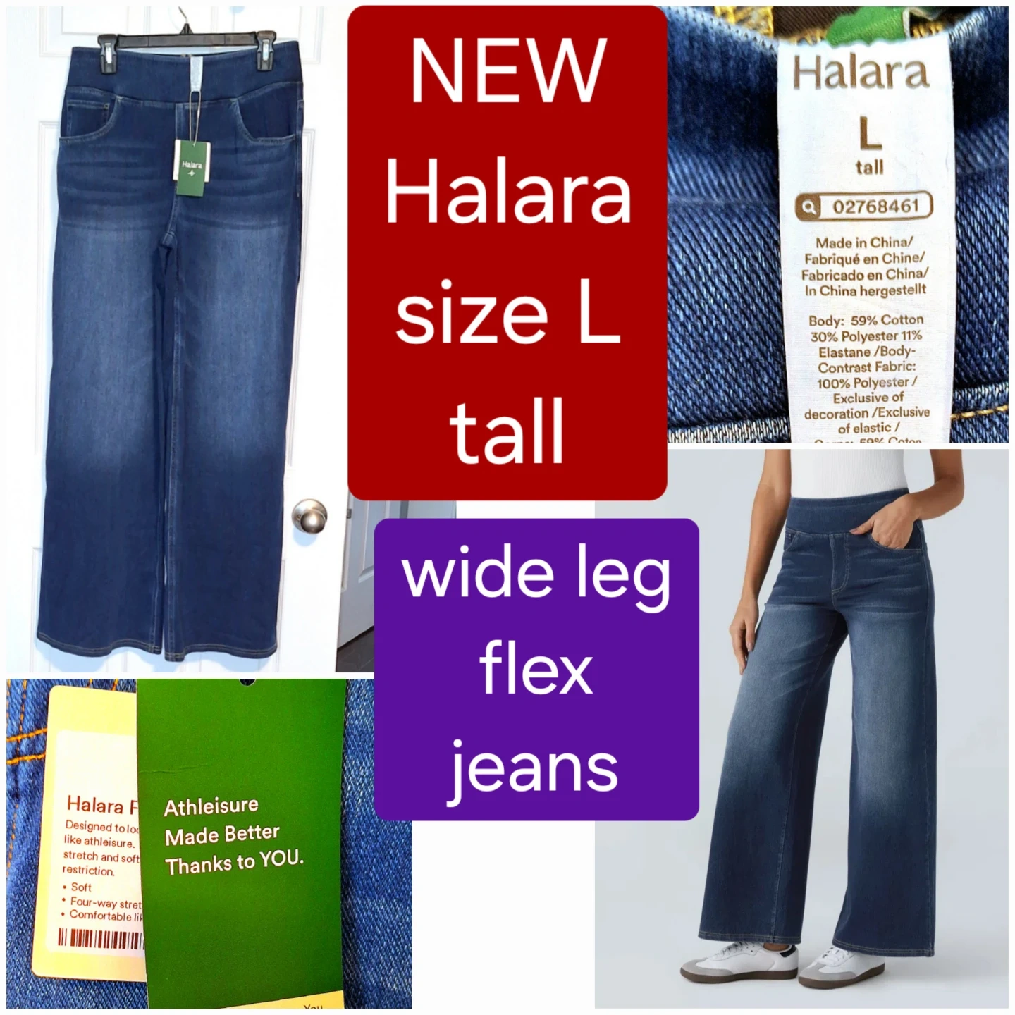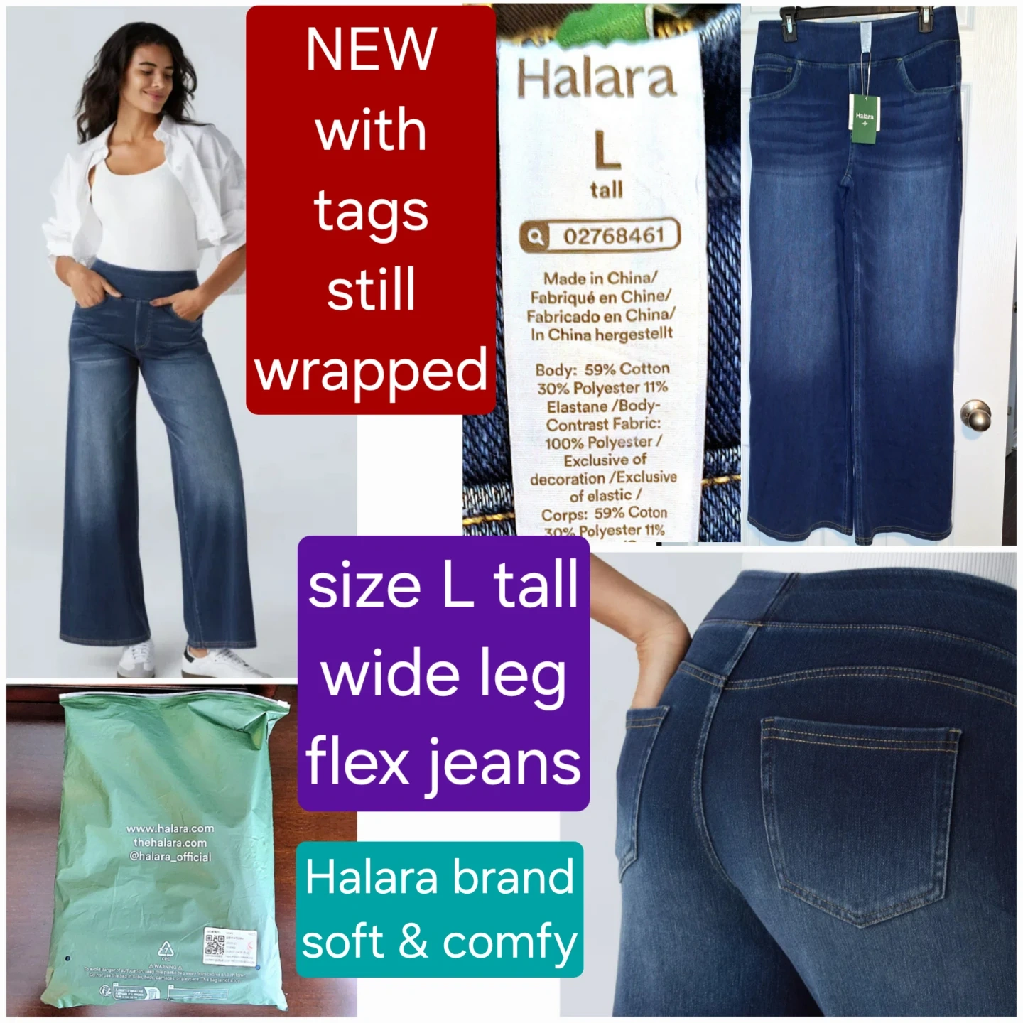 BRAND NEW WITH TAGS still wrapped - Halara wide leg jeans - Size L Tall - flex denim