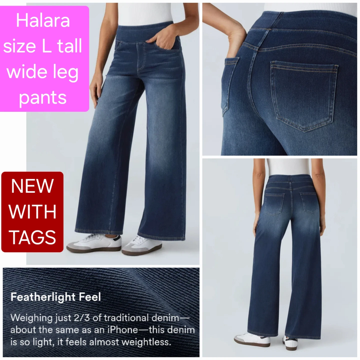 BRAND NEW WITH TAGS still wrapped - Halara wide leg jeans - Size L Tall - flex denim