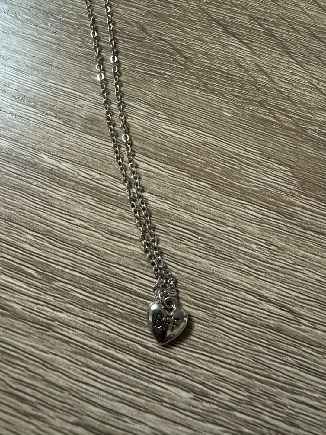 Buy & SellBFF Heart Pendant Necklace # cleanoutBFF Heart Pendant Necklace # cleanout$10Cute necklace with a heart pendant that says BFF on it. It's in great condition and ready for a new best friend!ConditionGoodWHERE TO MEETCheck LocationView MapSELLERSueGilbert17419 reviews0 chats·0 favorites·6 viewsSEND CHAT TO SELLERHi Sue! I’m interested in your listing.Hi Sue! I’m interested in your listing.Get the Karrot app to chatSign In to chat
