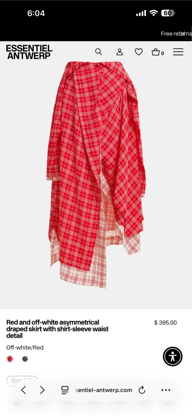 This Essentiel Antwerp skirt features a red and off-white asymmetrical plaid design. It has a draped silhouette and a shirt-sleeve waist detail. Polyester and viscose blend. I buy for 395 plus tax , I sell for 200. New