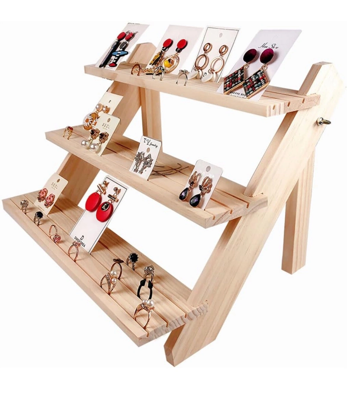 New Wooden Jewelry Display Rack Easy To Durable Portable Jewelry Bracelets Rings Earrings Display Stand Earring Stall Stand
