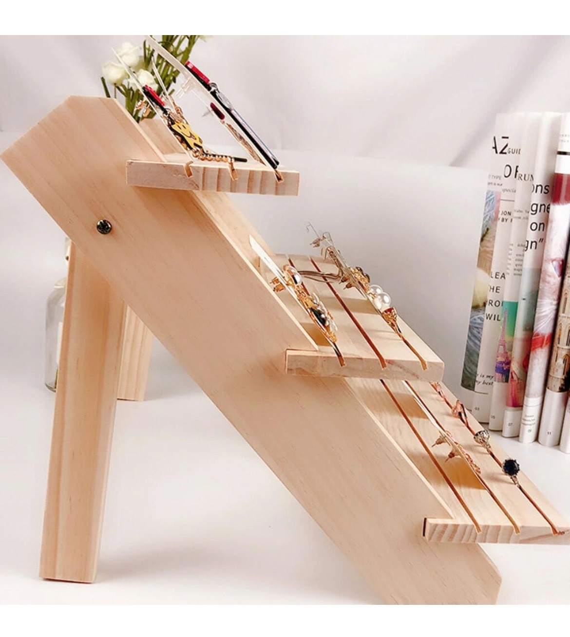 Crafted from wood, this Earring Stall Stand is built to last, ensuring long-term durability for your precious jewelry
