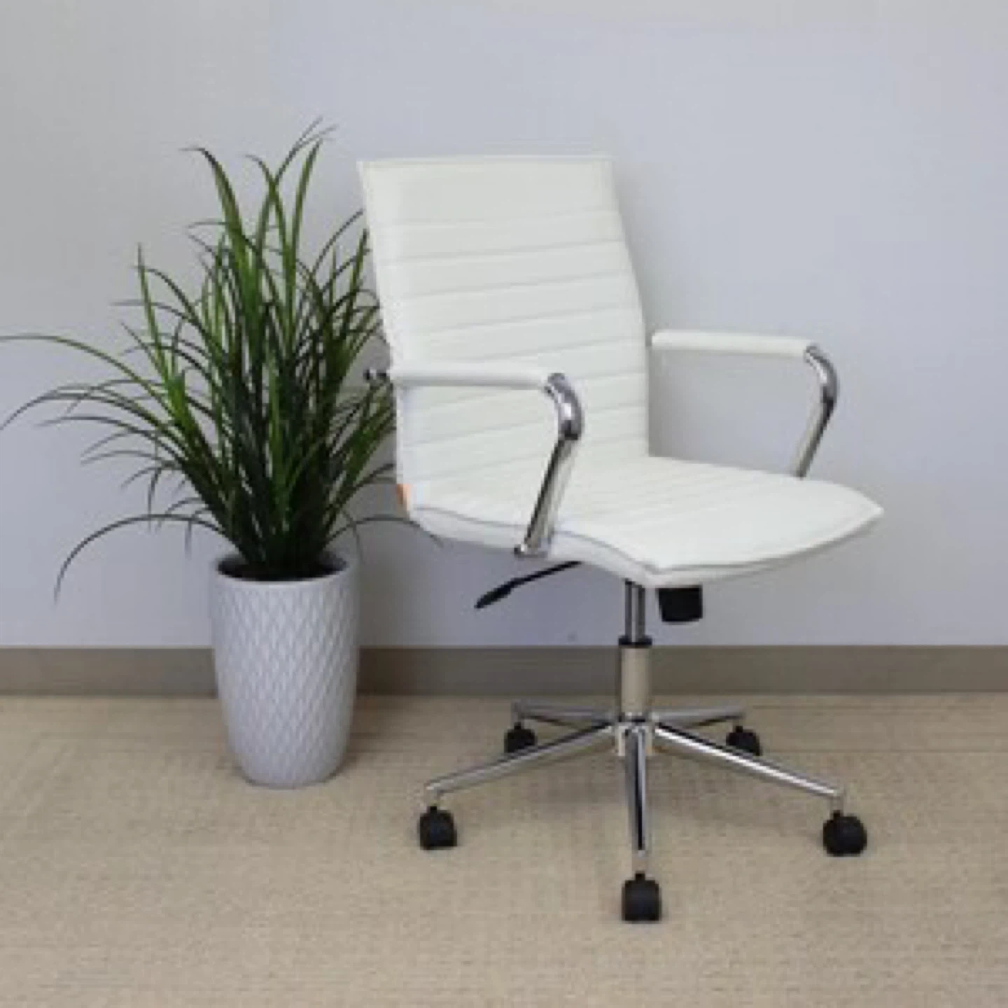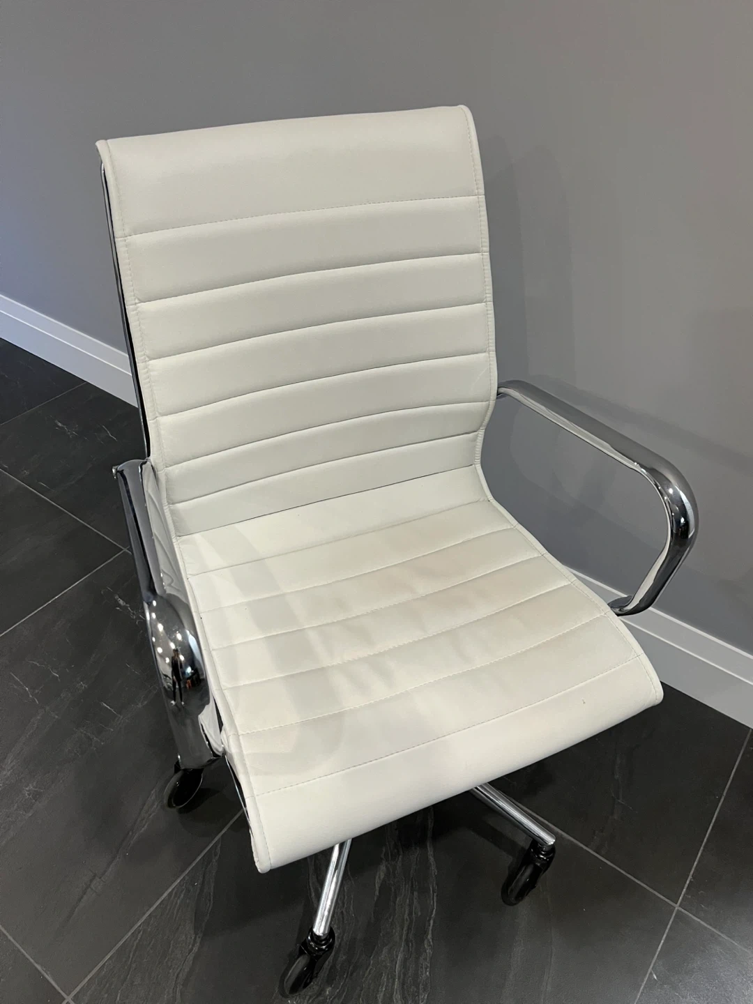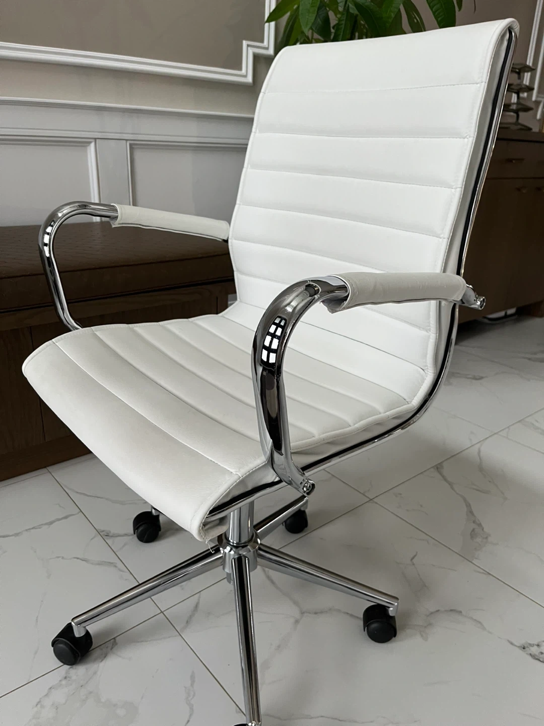 White Faux Leather Office Chair with Chrome Accents