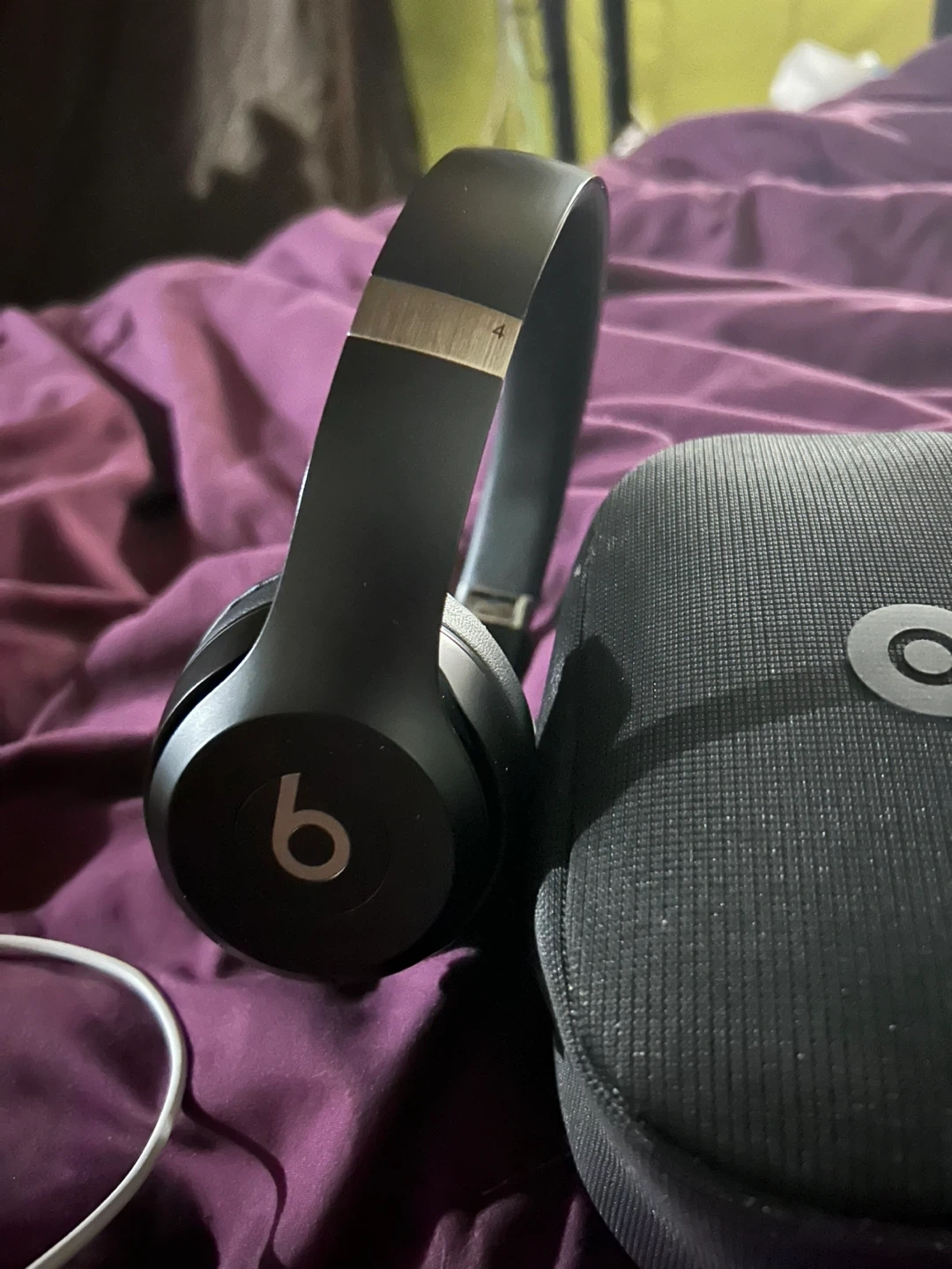 Beats Solo 4 wireless on-ear headphones in black. Comes with a protective carrying case. These headphones offer a comfortable fit and great sound quality. Come with charger barley used reason why dont want them because I bought apple pods like ear buds better . Located fort Saskatchewan