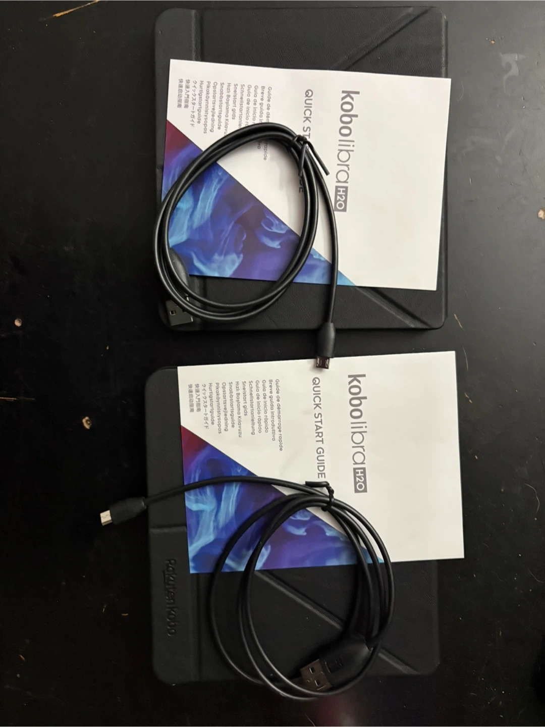This is a protective case for the Rakuten Kobo Libra H2O e-reader. It comes with a USB charging cable. The case is black and includes a quick start guide.