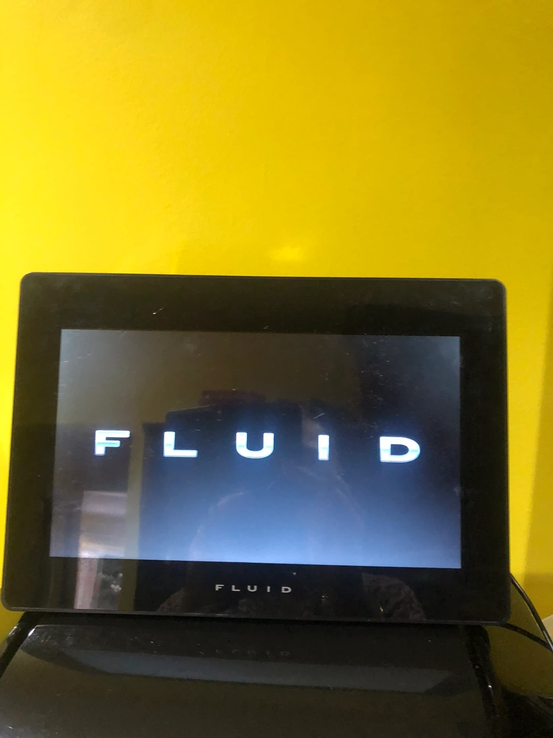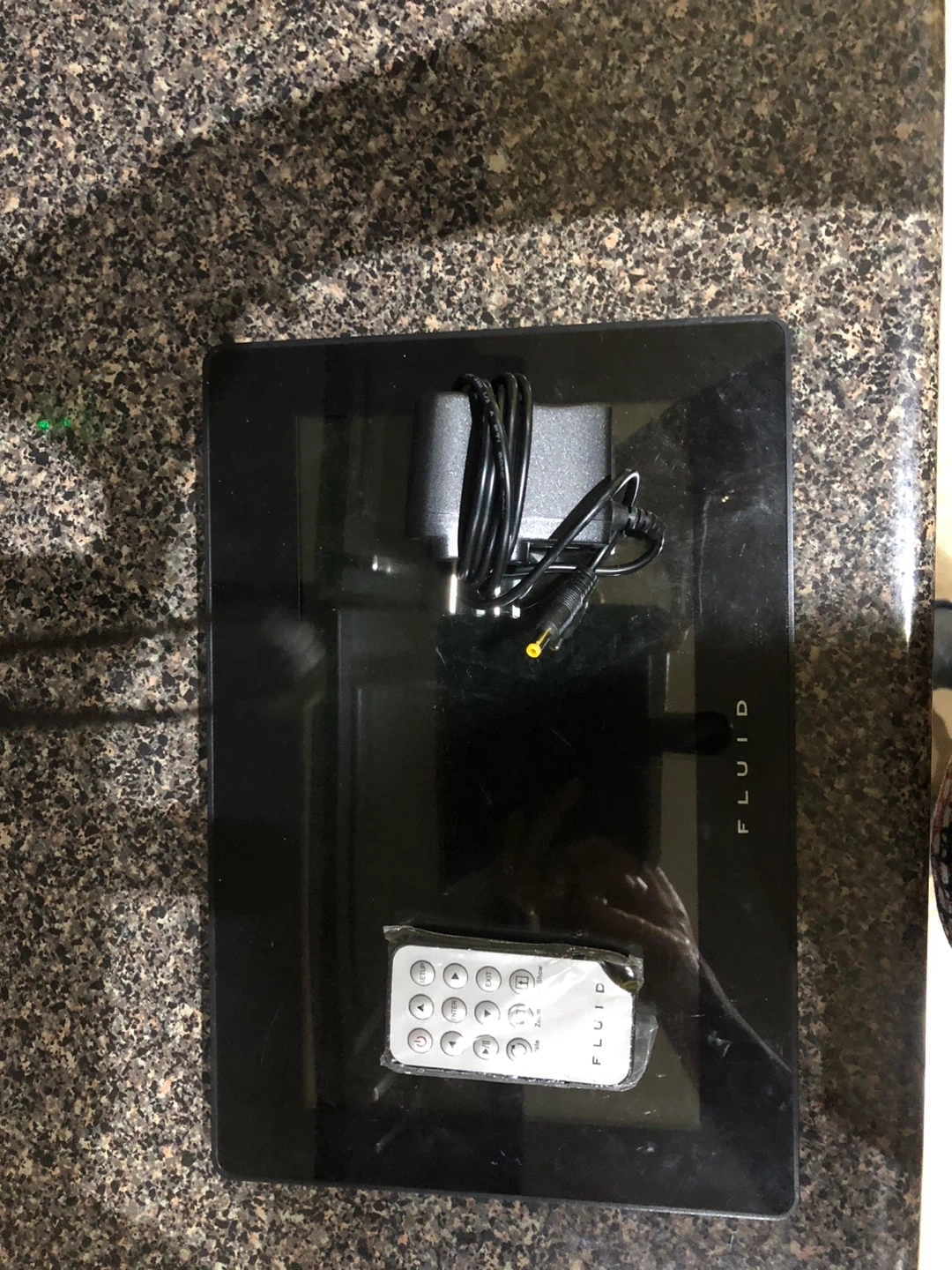 Fluid digital photo frame. It comes with a remote and charger so you can easily display your favourite photos. Great for sharing memories with family and friends.