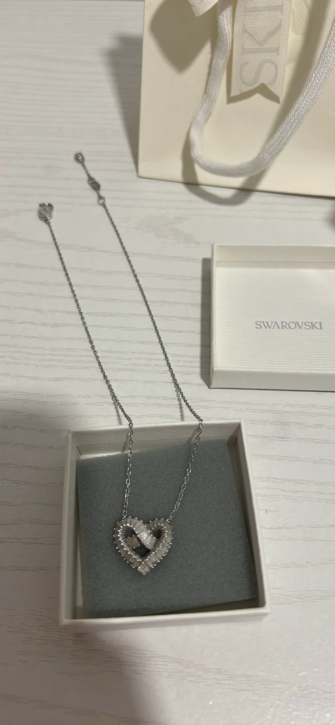 This is a Swarovski necklace with a heart pendant. It's made with sparkling stones. Includes the original box and bag!