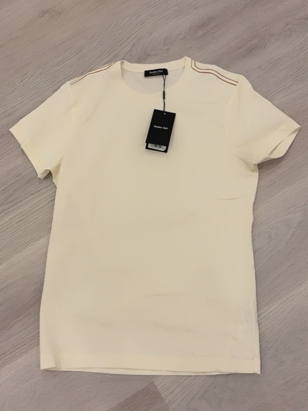 Brand new with tags on. Short sleeve t-shirt from Massimo Dutti. Features contrast seam detail on the shoulders. Retails for $65 before tax.