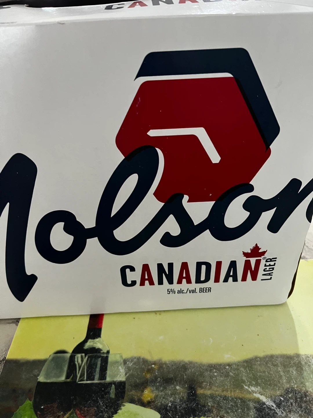 This is a case of 30 Molson Canadian Lager beer cans. Each can contains 355 ml of beer. The alcohol content is 5% by volume. It's a classic Canadian lager.