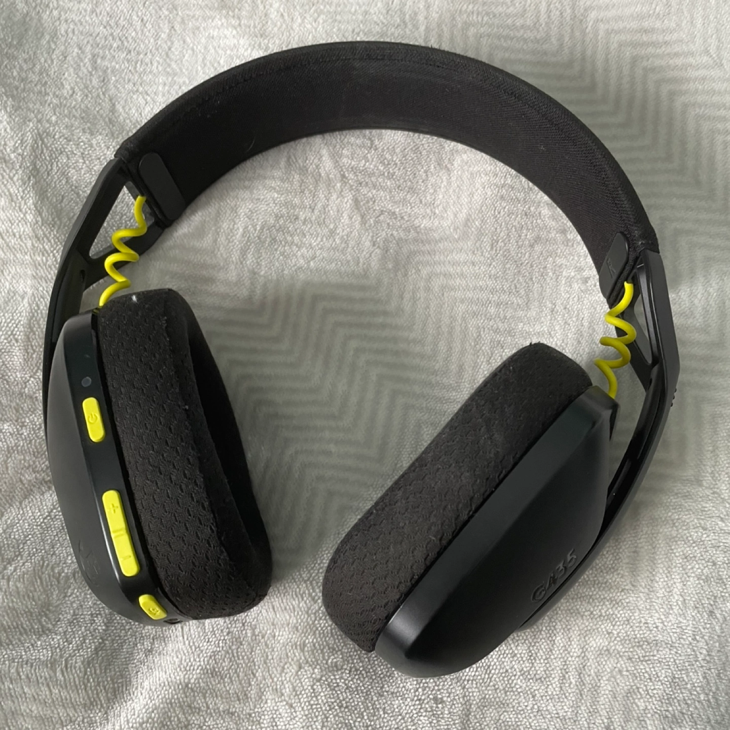 Used Wireless gaming headset. Black with neon yellow accents. Lightweight design. Features Bluetooth and LIGHTSPEED wireless connectivity. Includes a microphone. USB-C charging.