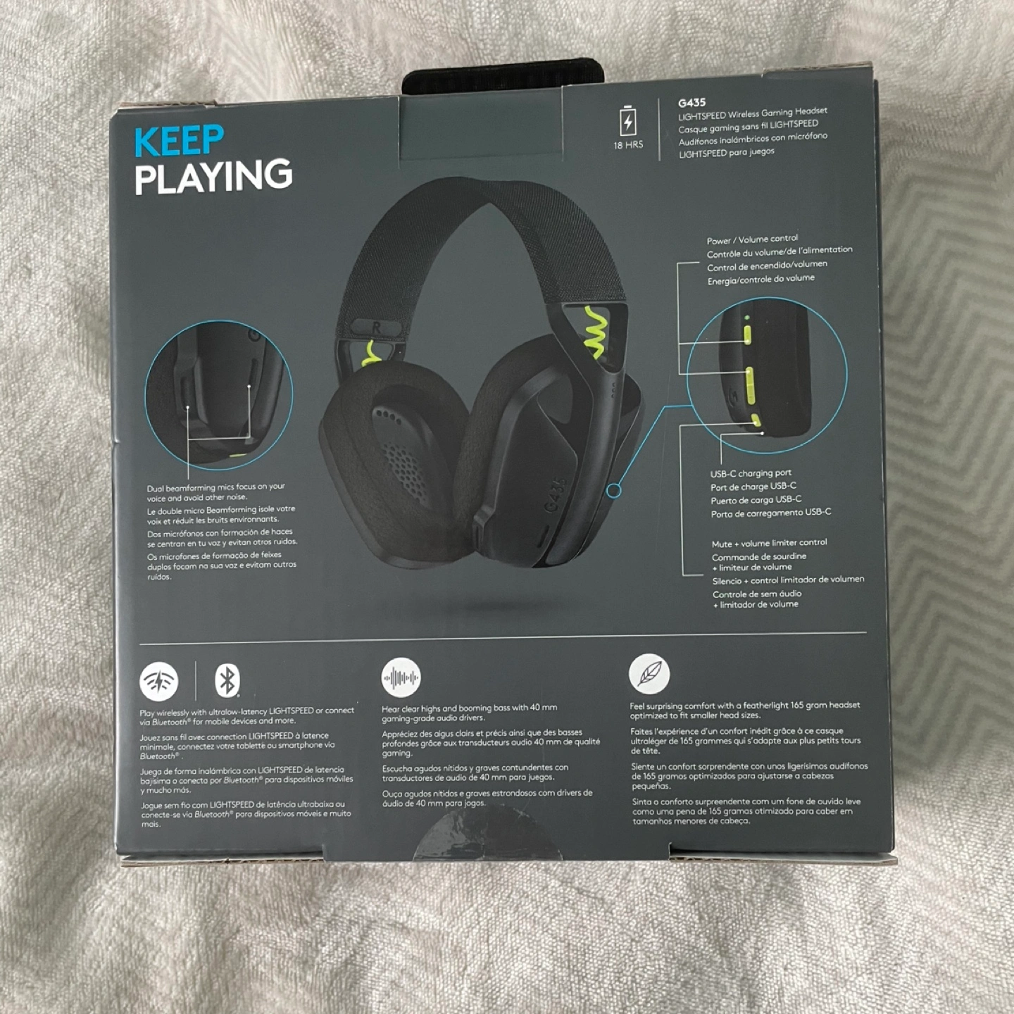 Used Wireless gaming headset. Black with neon yellow accents. Lightweight design. Features Bluetooth and LIGHTSPEED wireless connectivity. Includes a microphone. USB-C charging.