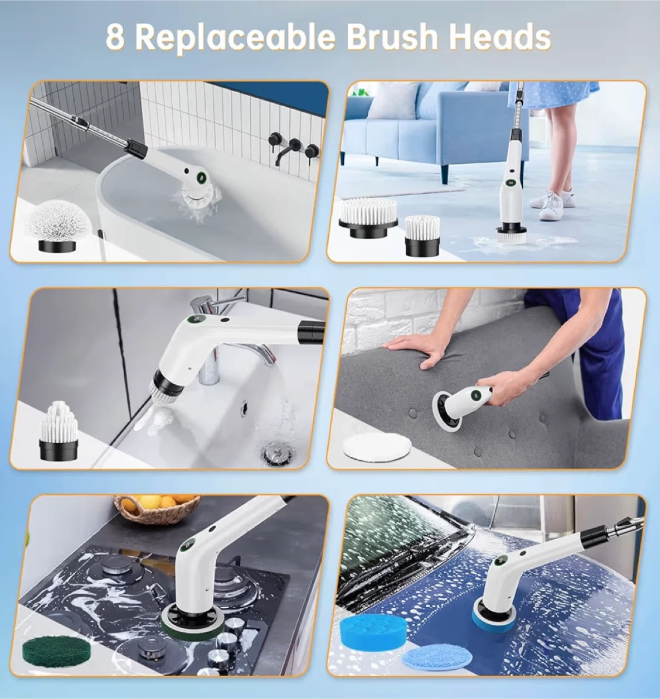 Adjustable Handle and 9 Brush Heads: The electric cleaning brush comes with a retractable stainless steel handle and 9 interchangeable brush heads, allowing you to easily clean everything from the bathtub to the ceiling. Fast Charging: This high-speed battery-powered shower cleaner charges quickly (Type-C) in 3 to 4 hours and can then be used continuously for up to 90 minutes. Waterproof Protection: The long-handled shower cleaner features a fully waterproof design. Using it in humid environments prevents rust or short circuits and ensures long-term reliability. Mother’s Day Gift: Our cordless cleaning brush makes home cleaning a breeze, a perfect gift for mom, wife, grandma, effectively reducing the burden of daily household cleaning.