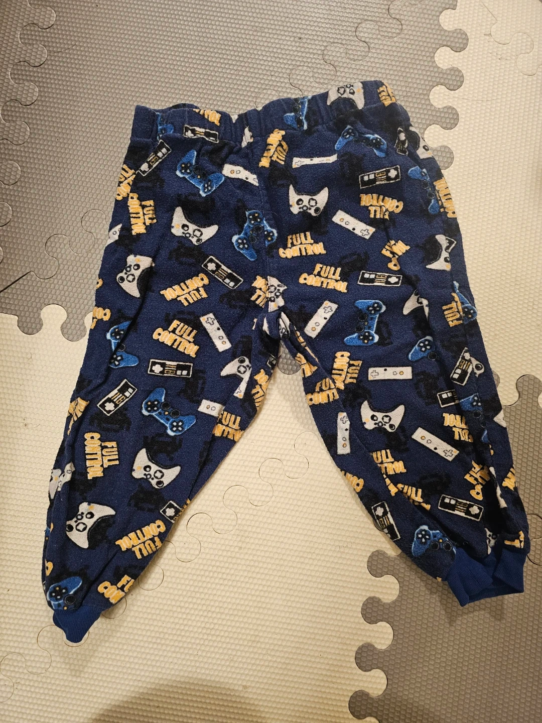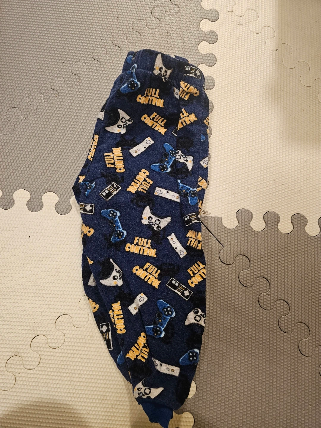 Comfy blue pajama pants with a fun all-over video game controller print. Made from 100% cotton. Perfect for little gamers who want to relax in style!
