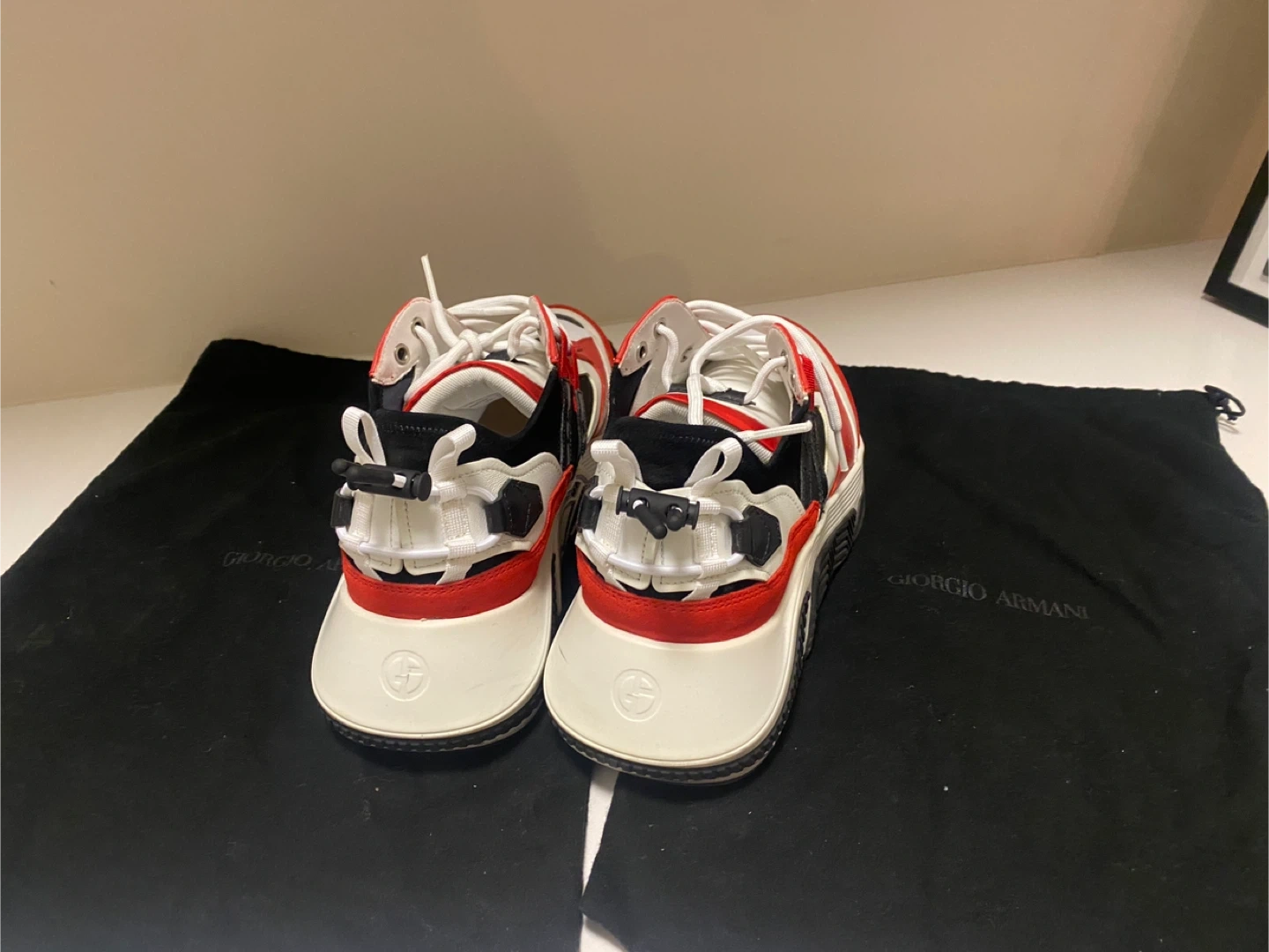 Giorgio Armani Red, White, and Black Sneakers - UK 10