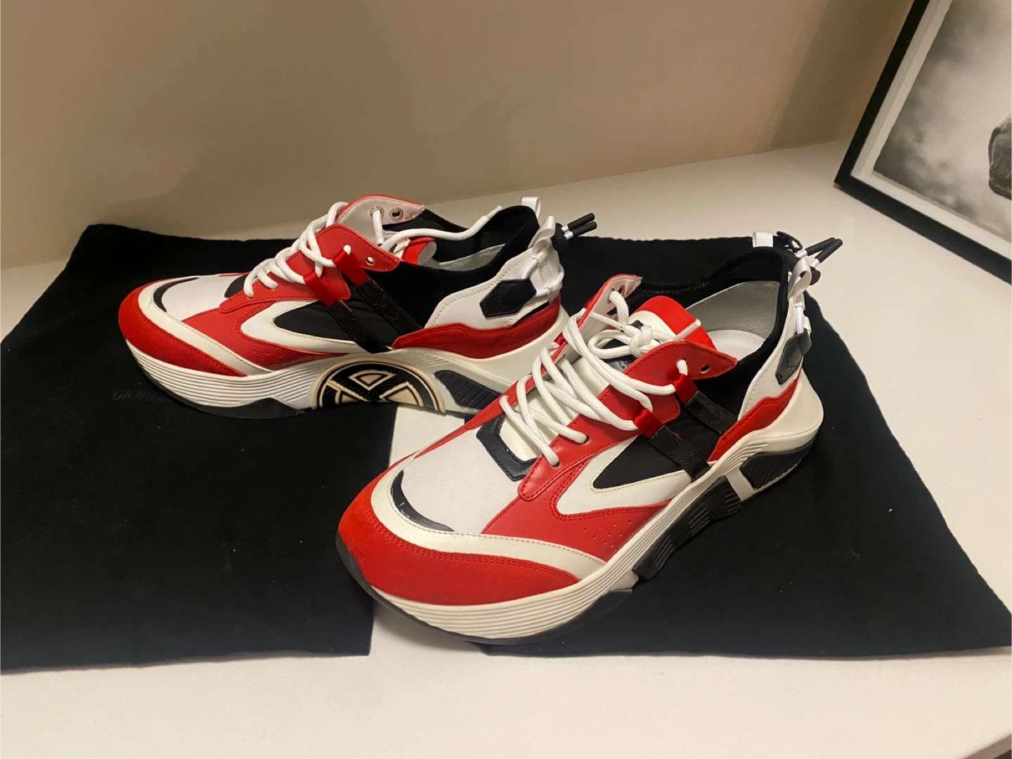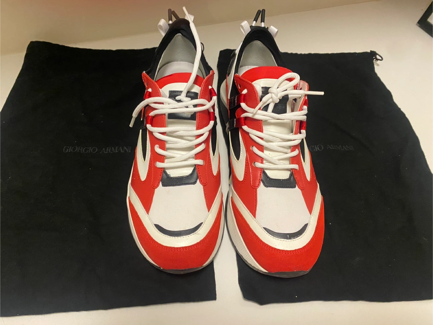 Giorgio Armani Red, White, and Black Sneakers - UK 10
