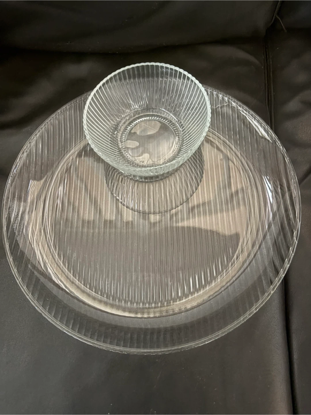 Selling a clear glass chip and dip serving set. It's in great condition and perfect for your next get-together! The set includes a large serving platter with a smaller bowl for dips or sauces. Simple and elegant! Message me for more info, pick up only south side location.