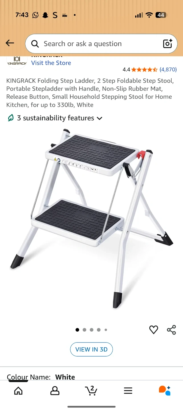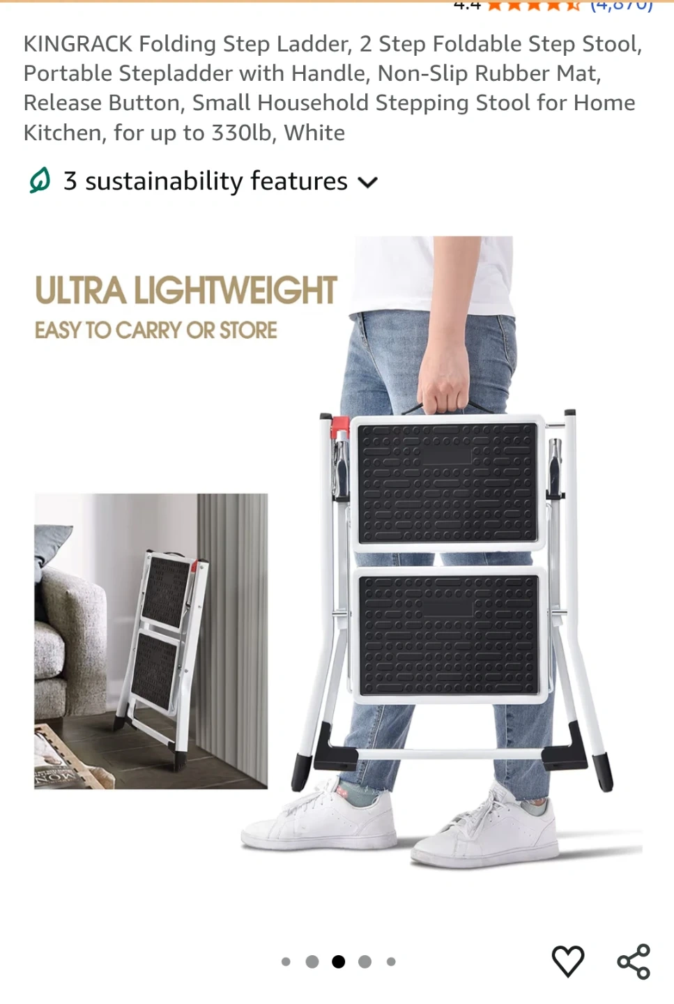 Selling a WK2031 step ladder in excellent condition! It's a lightweight and portable ladder that can support a maximum load of 330 lbs. The dimensions are approximately 27.17 inches in height when open and 30.31 inches when folded. Comes with the original box!