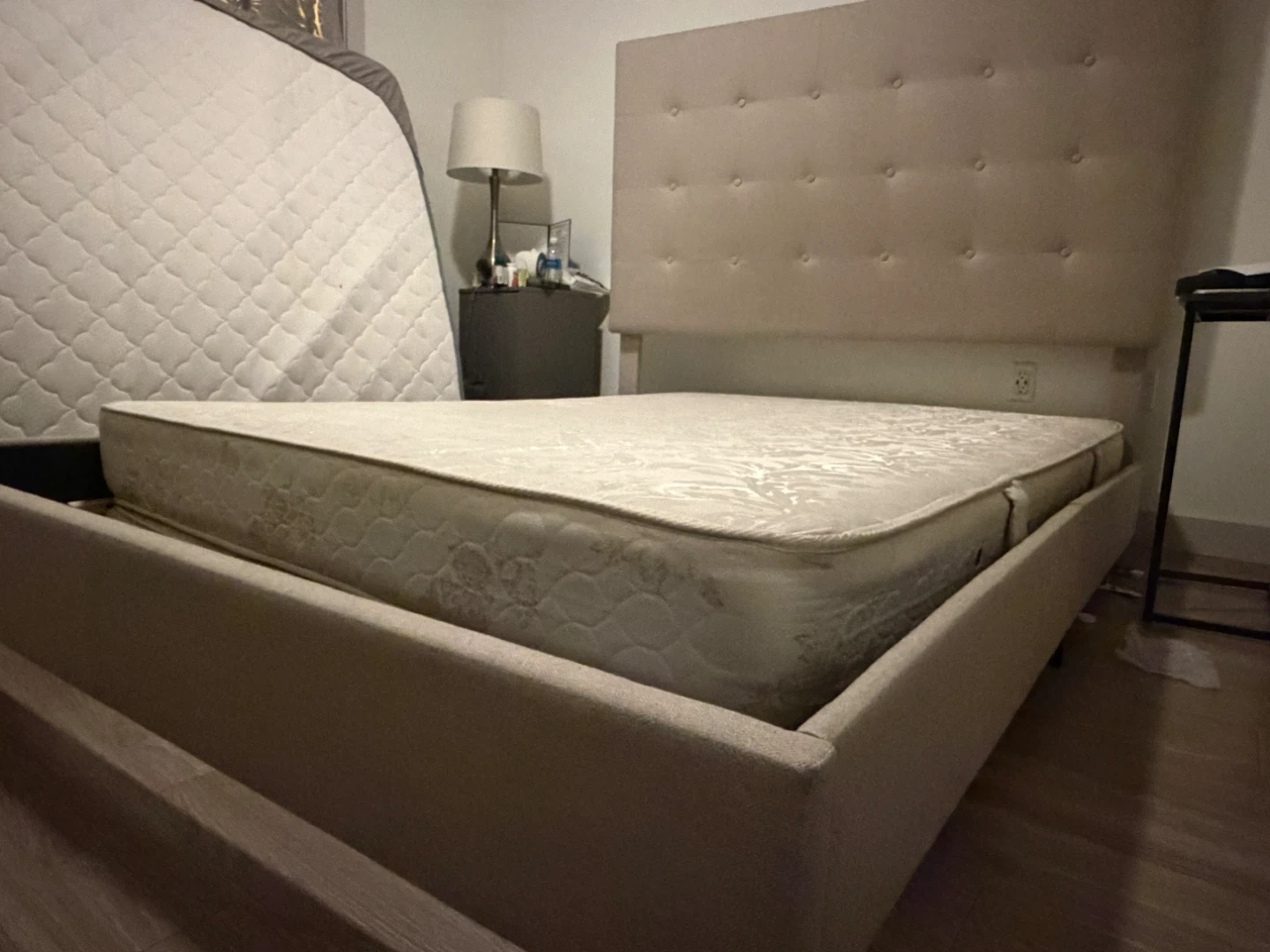 Buy & SellTufted Headboard Queen Bed Frame with MattressTufted Headboard Queen Bed Frame with Mattress$180This is a queen-size bed frame upholstered in a neutral beige fabric with a tufted headboard. I The bed frame is made with a sturdy wood construction.WHERE TO MEETCheck LocationView MapSELLERverifiedJayFestival Place600 reviews0 chats·0 favorites·21 viewsSEND CHAT TO SELLERHi Jay! I’m interested in your listing.Hi Jay! I’m interested in your listing.Get the Karrot app to chatSign In to chat