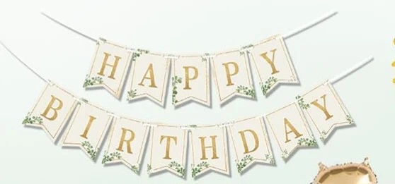 Happy Birthday Banner with Gold Glitter Letters