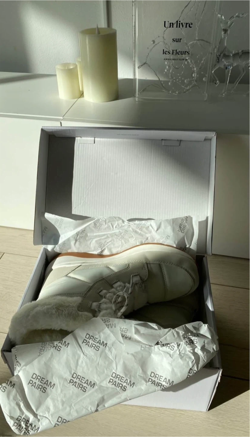 Original price is $70 before tax!! These Dream Pairs winter boots are a creamy white colour with faux fur lining. They include the original box and are 8-8.5 size .They're perfect for keeping your feet warm in colder weather! Tried them once, missed the return window . Perfect condition!