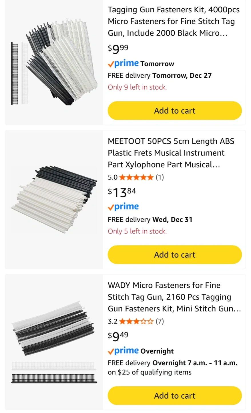 This is a new box of Fjdging 4400 tagging gun fasteners. It includes approximately 4400 micro fasteners. These fasteners are used with a standard tagging gun.