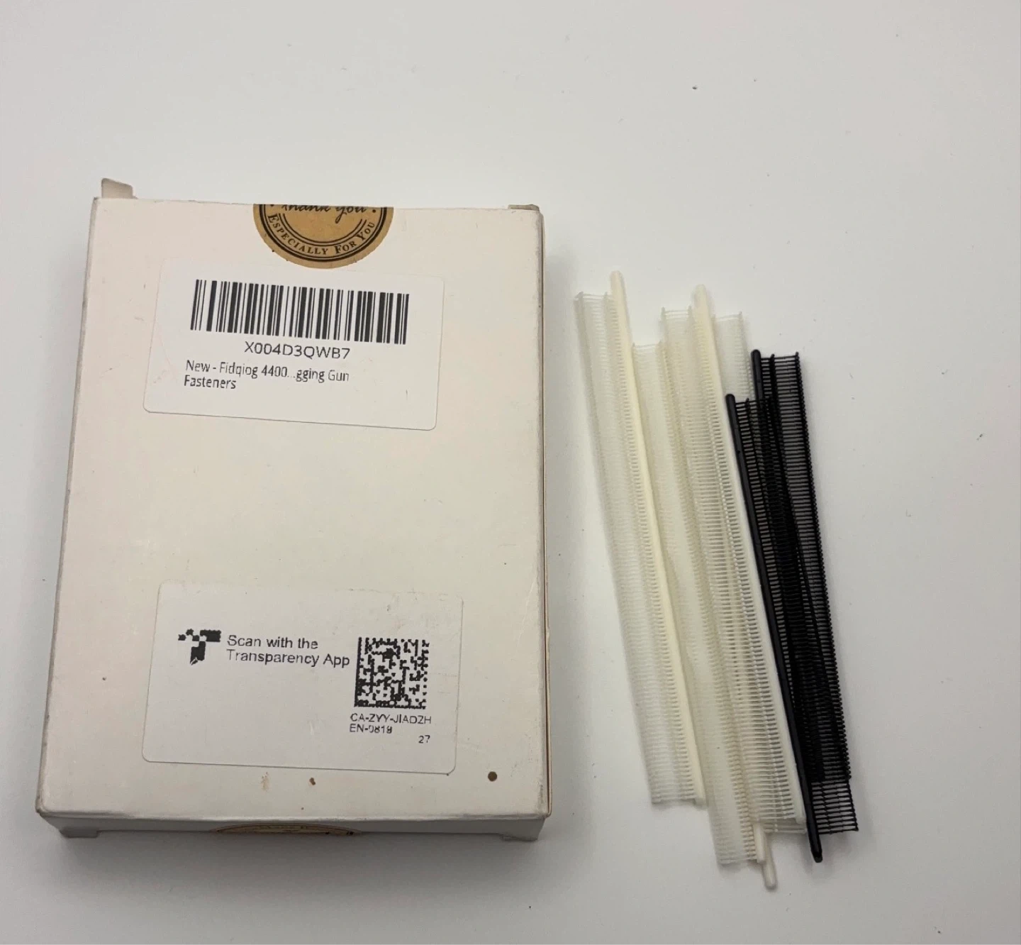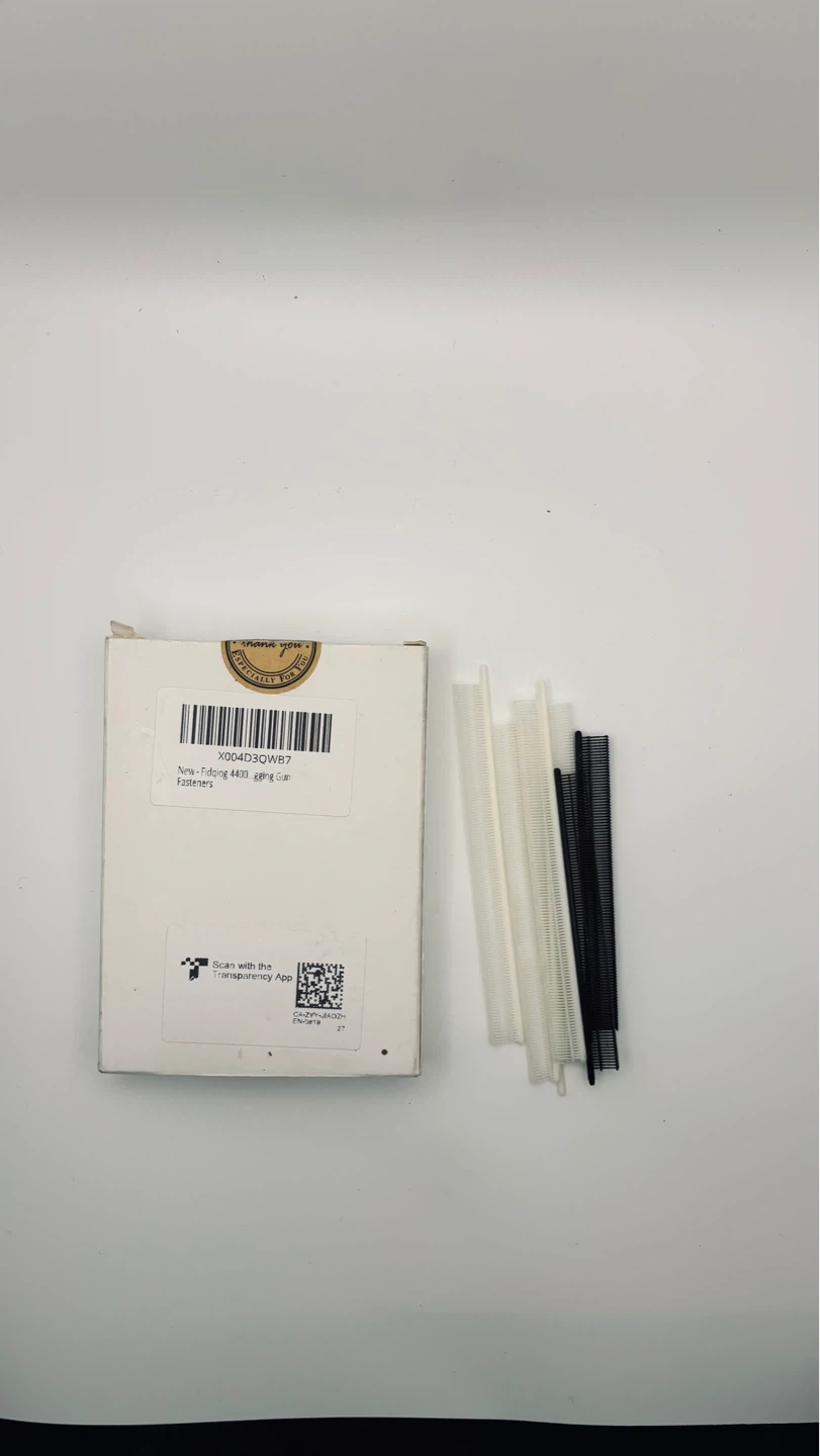 This is a new box of Fjdging 4400 tagging gun fasteners. It includes approximately 4400 micro fasteners. These fasteners are used with a standard tagging gun.