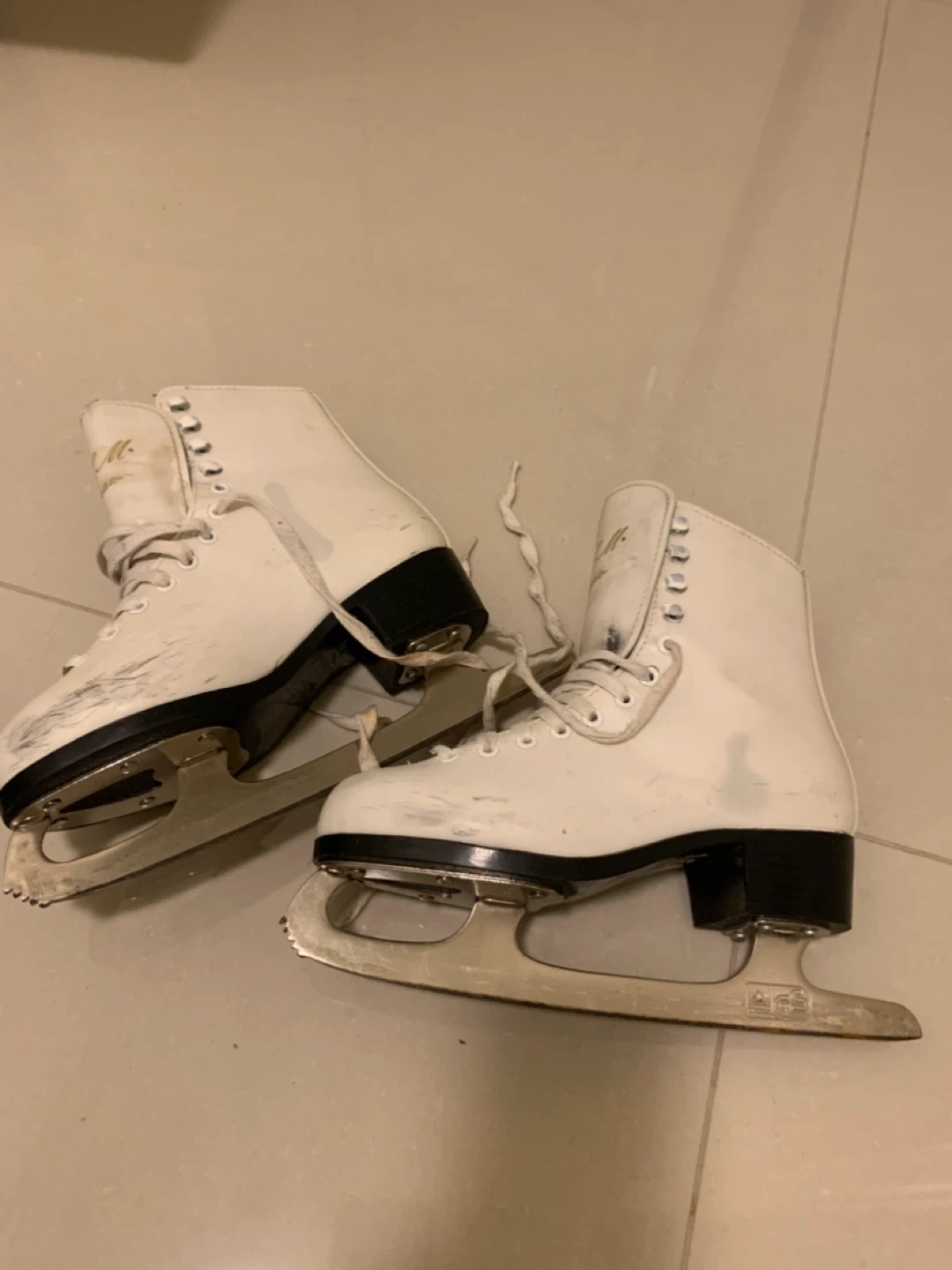 White CCM Competitor figure skates. Comes with blade guards. Some scuffs and marks consistent with use. Size 4 women's.