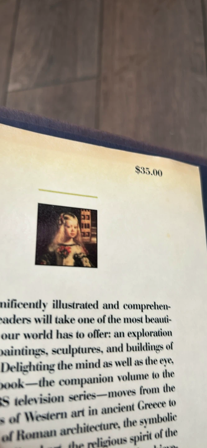 This book explores art from ancient Greece to Modernism. It's the companion volume to the PBS television series. The book features paintings, sculptures, and buildings.
