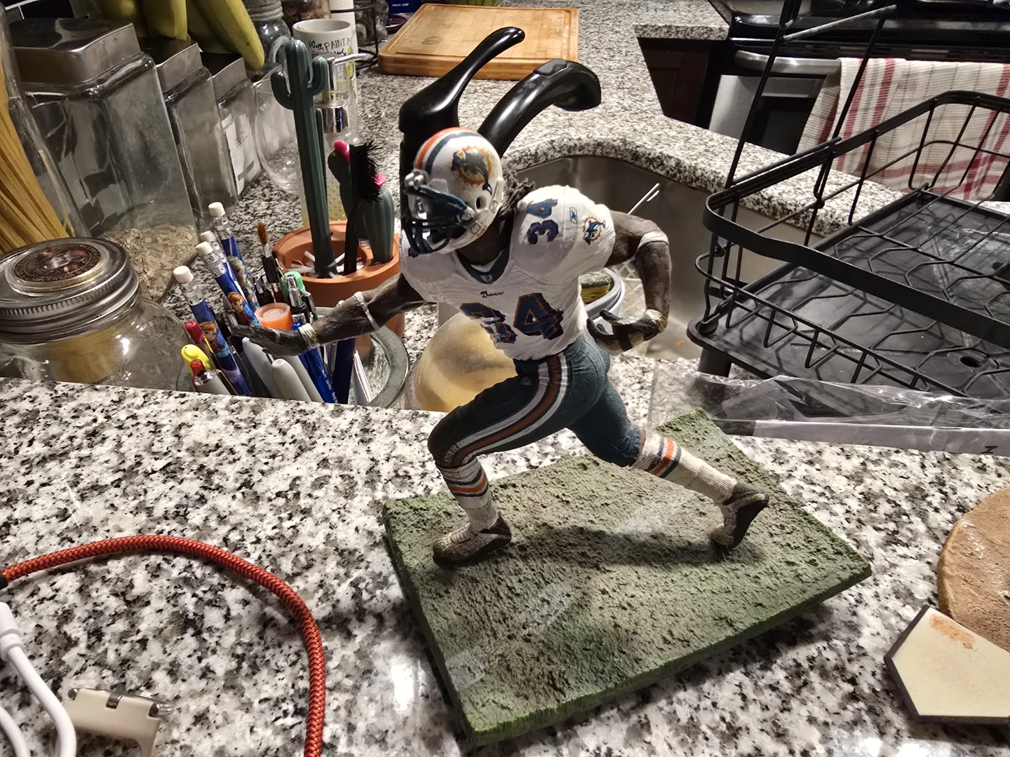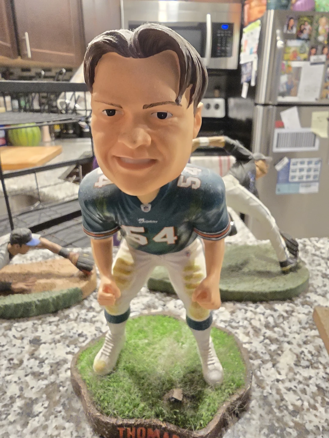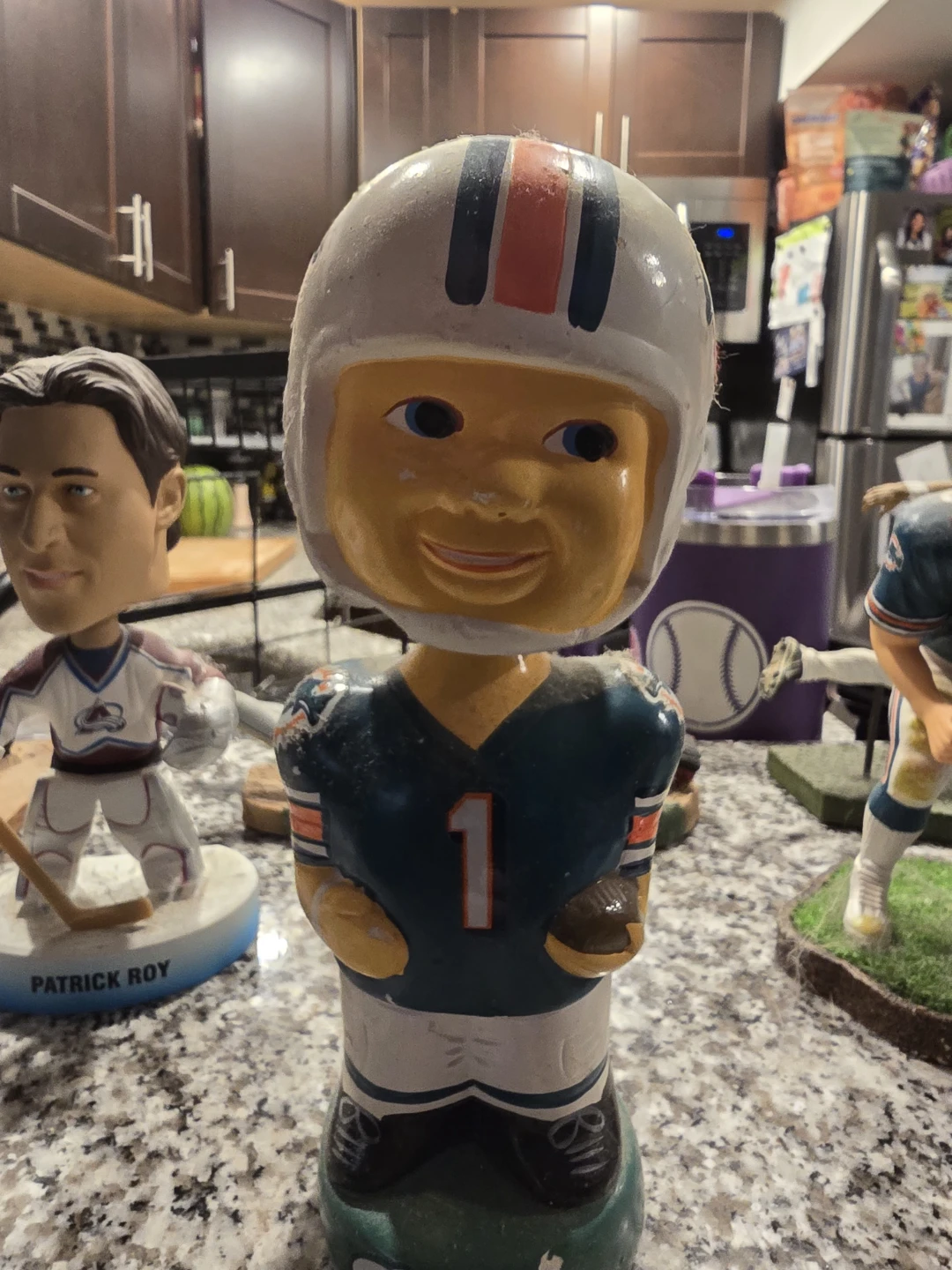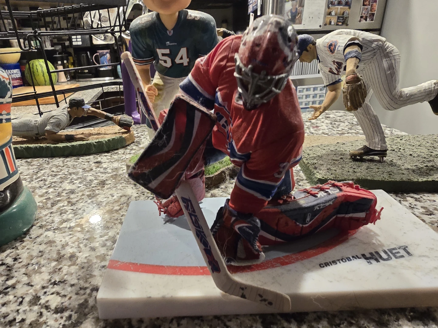 A collectible figurine depicting The Beatles walking across Abbey Road. This detailed piece captures the iconic album cover. It's a great display item for any music fan! Plus baseball, hockey and football figurine.