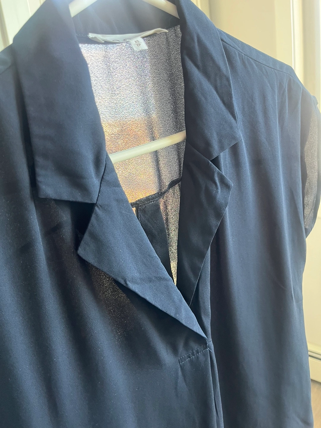 Beautiful Navy Blue Sleeveless Collared Blouse Size XS Business Casual