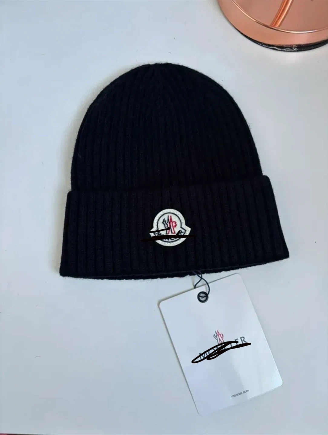 Selling a Moncler black beanie hat. It's in great condition and comes with the original tag and packaging