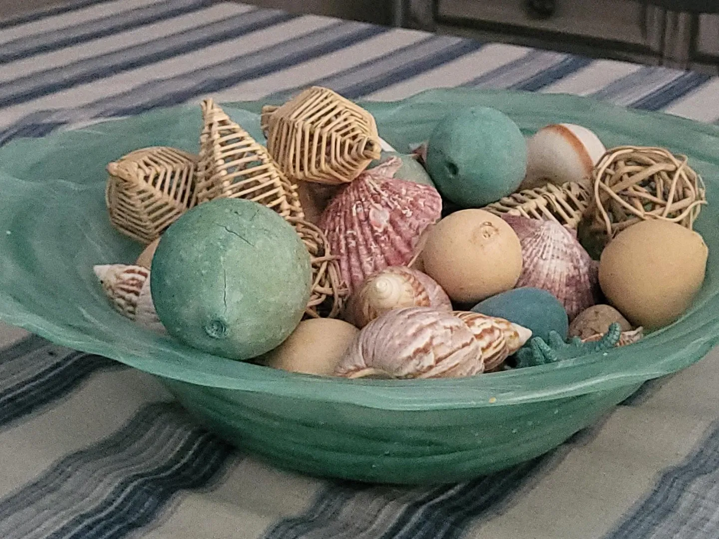 Decorative Bowl with Seashells and Wicker Orbs