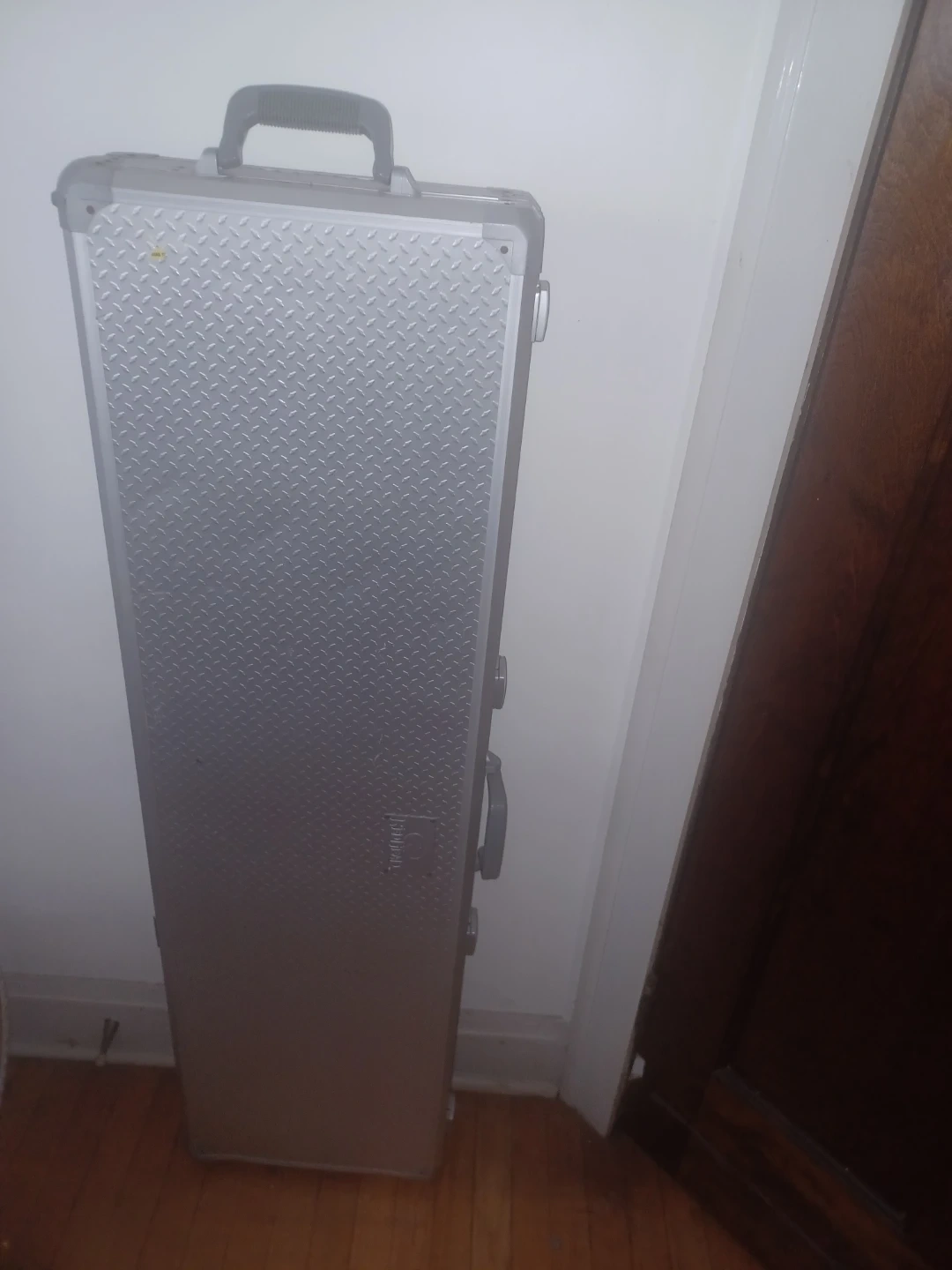 This is a Redhead brand aluminum hard case. It's lined with protective foam and includes a handle and latches. This case is great for transporting and protecting equipment. Wheels for rolling and keys for locking . room for 2 rifles or 2 shotguns.